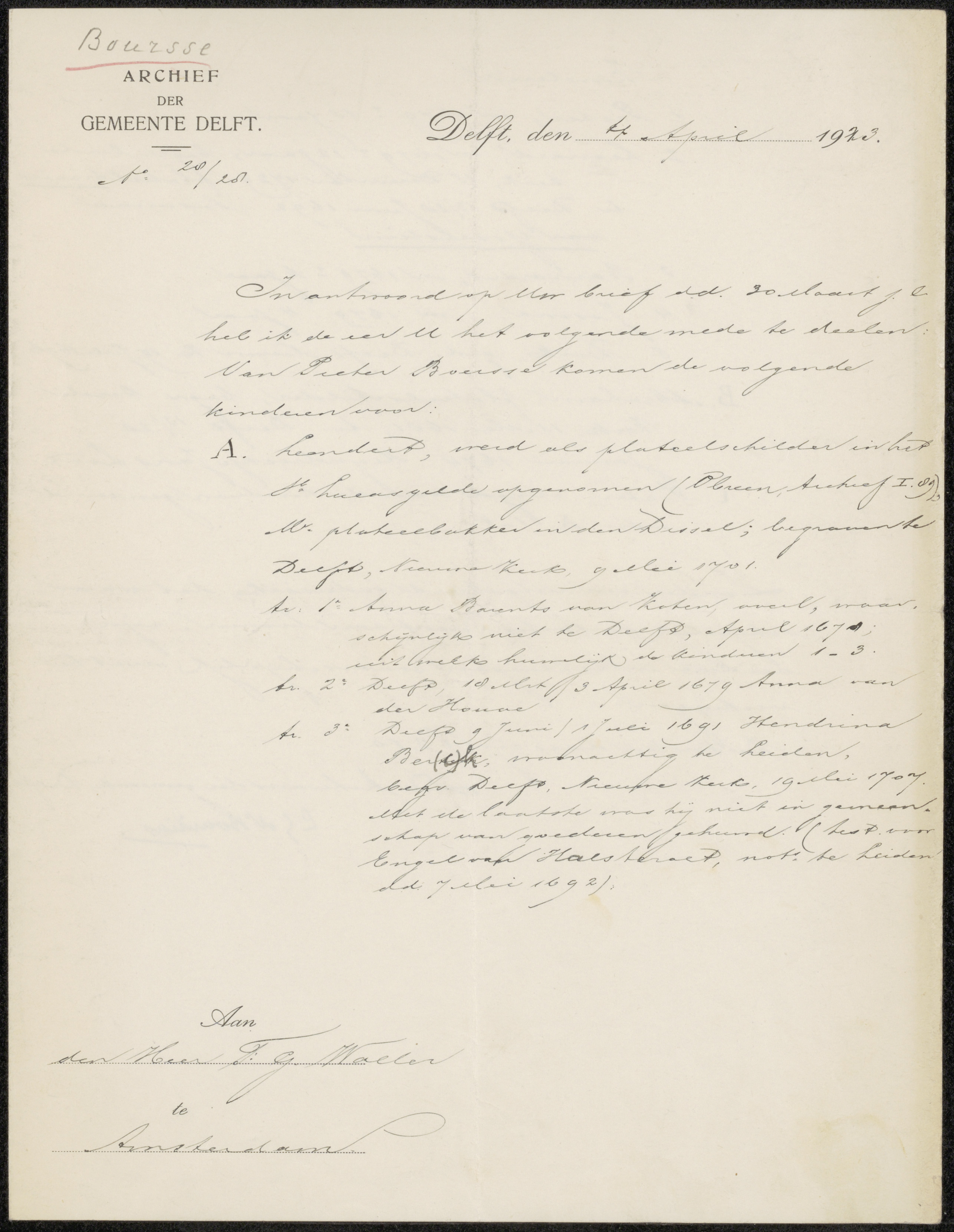 Brief aan François Gérard Waller