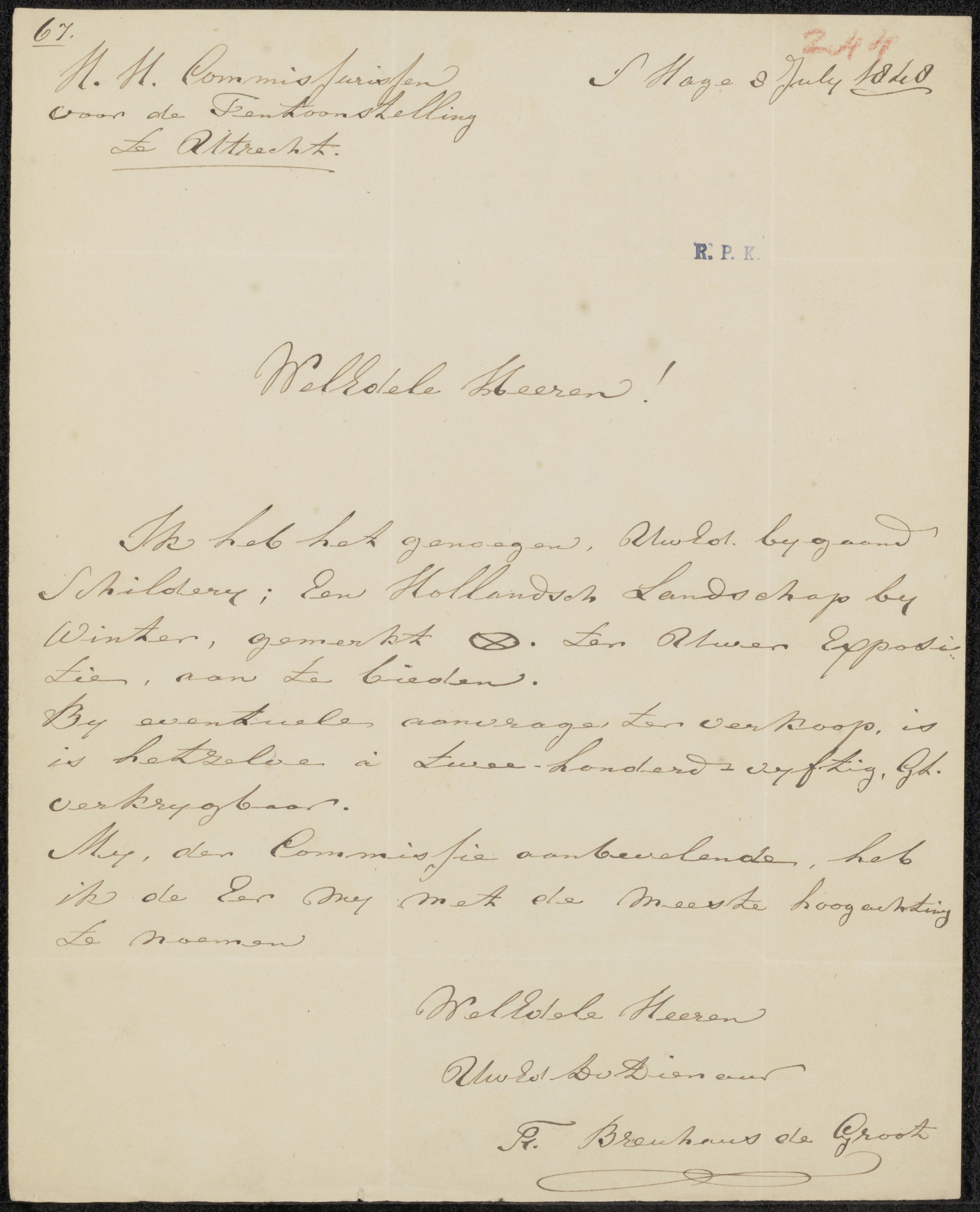 Brief aan de commissie van de Tentoonstelling van Le...