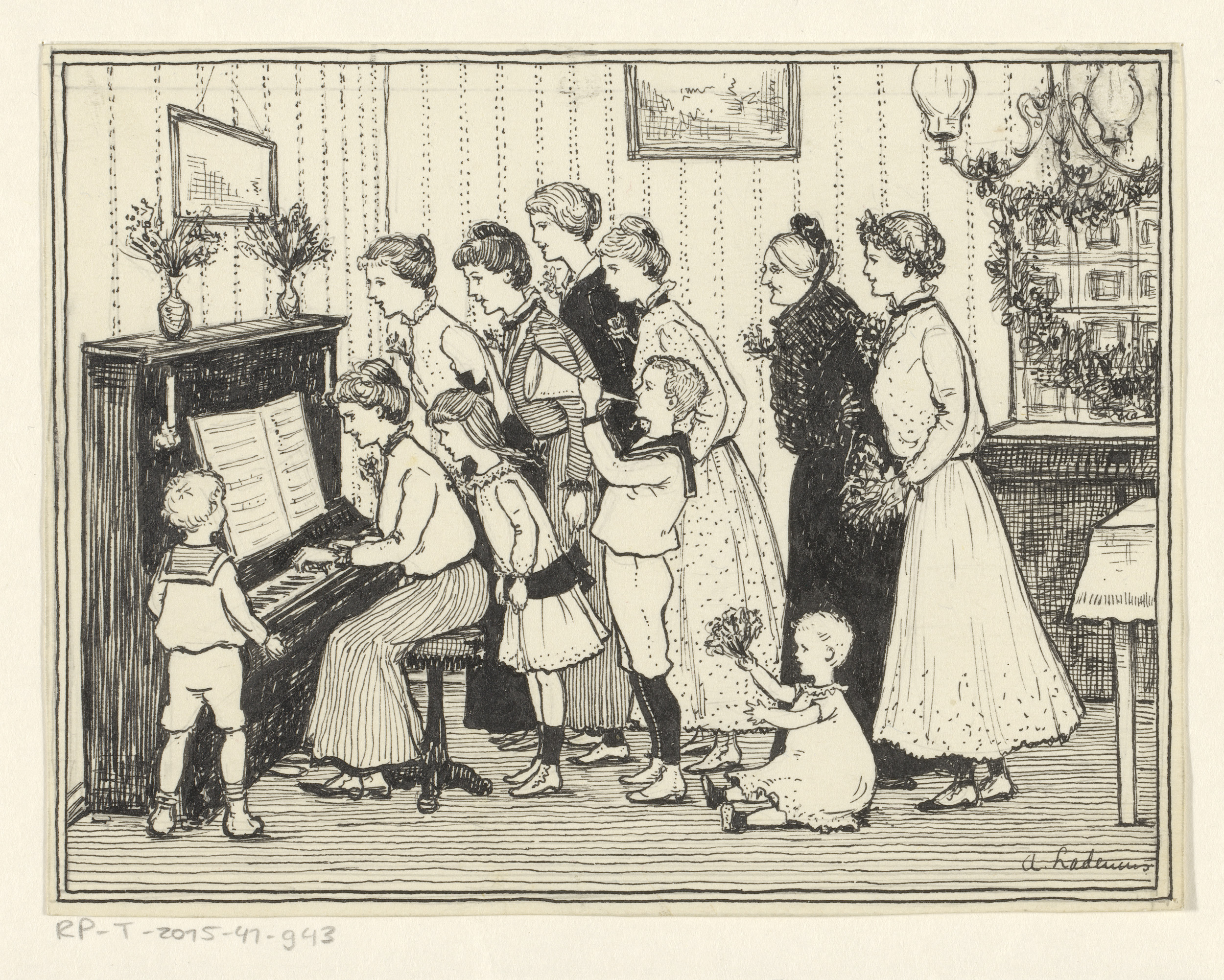 Familie rond een piano