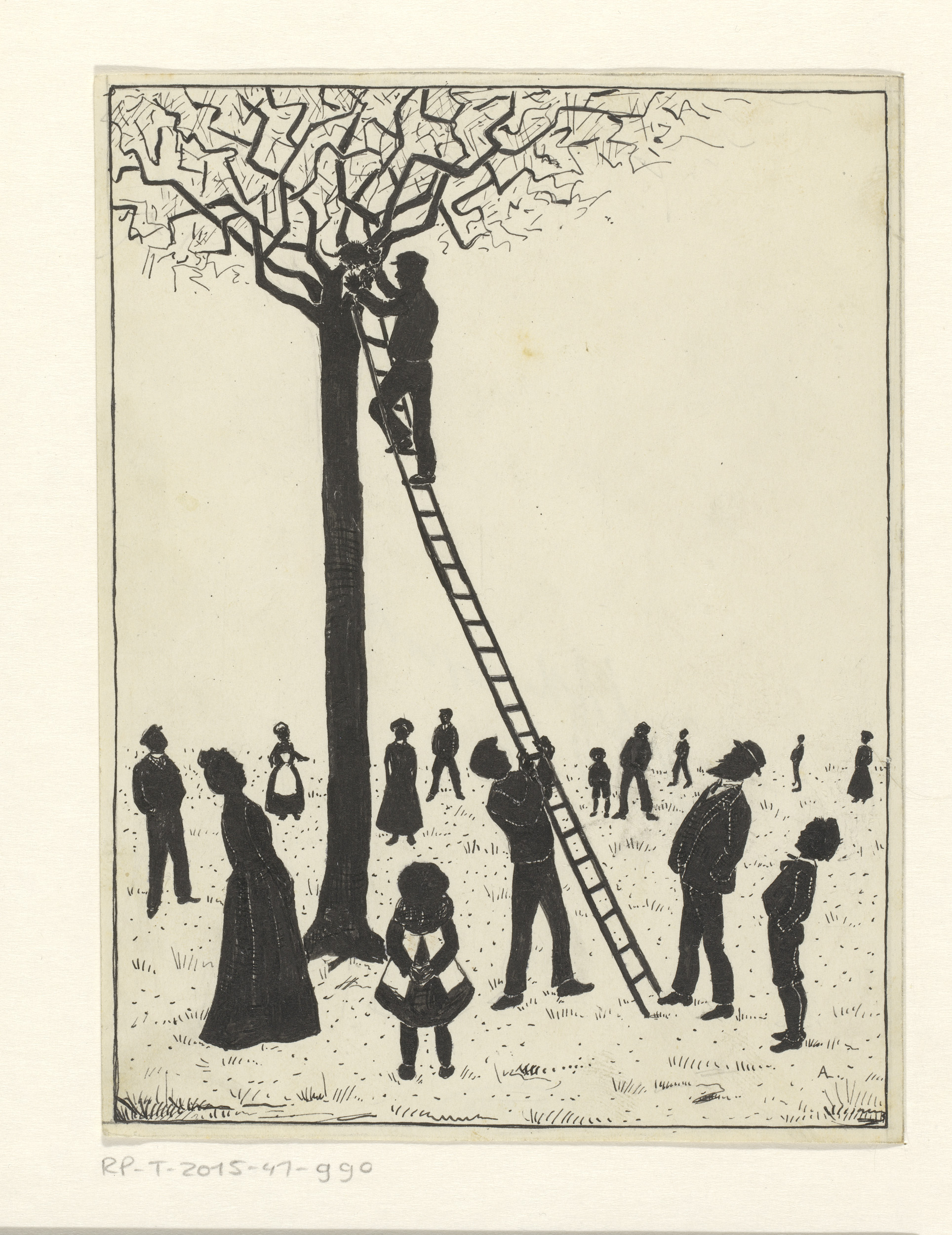 Man redt een kat uit een boom