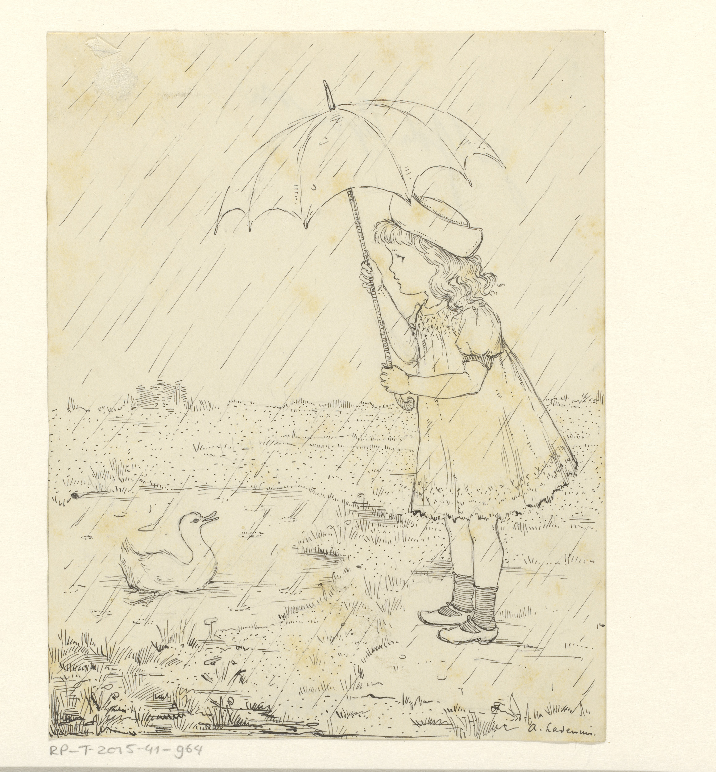 Meisje met paraplu in de regen