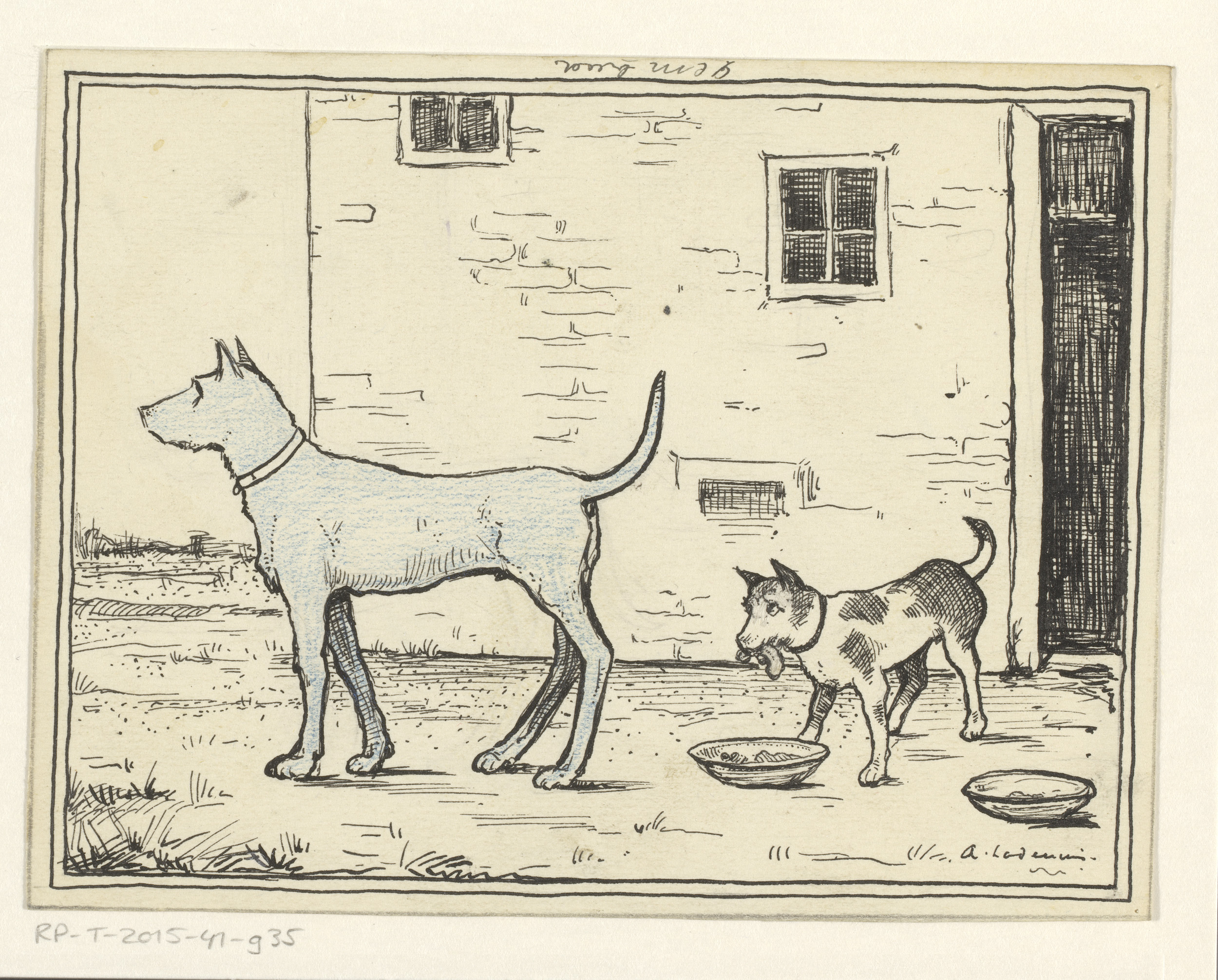 Twee honden bij twee schotels met eten