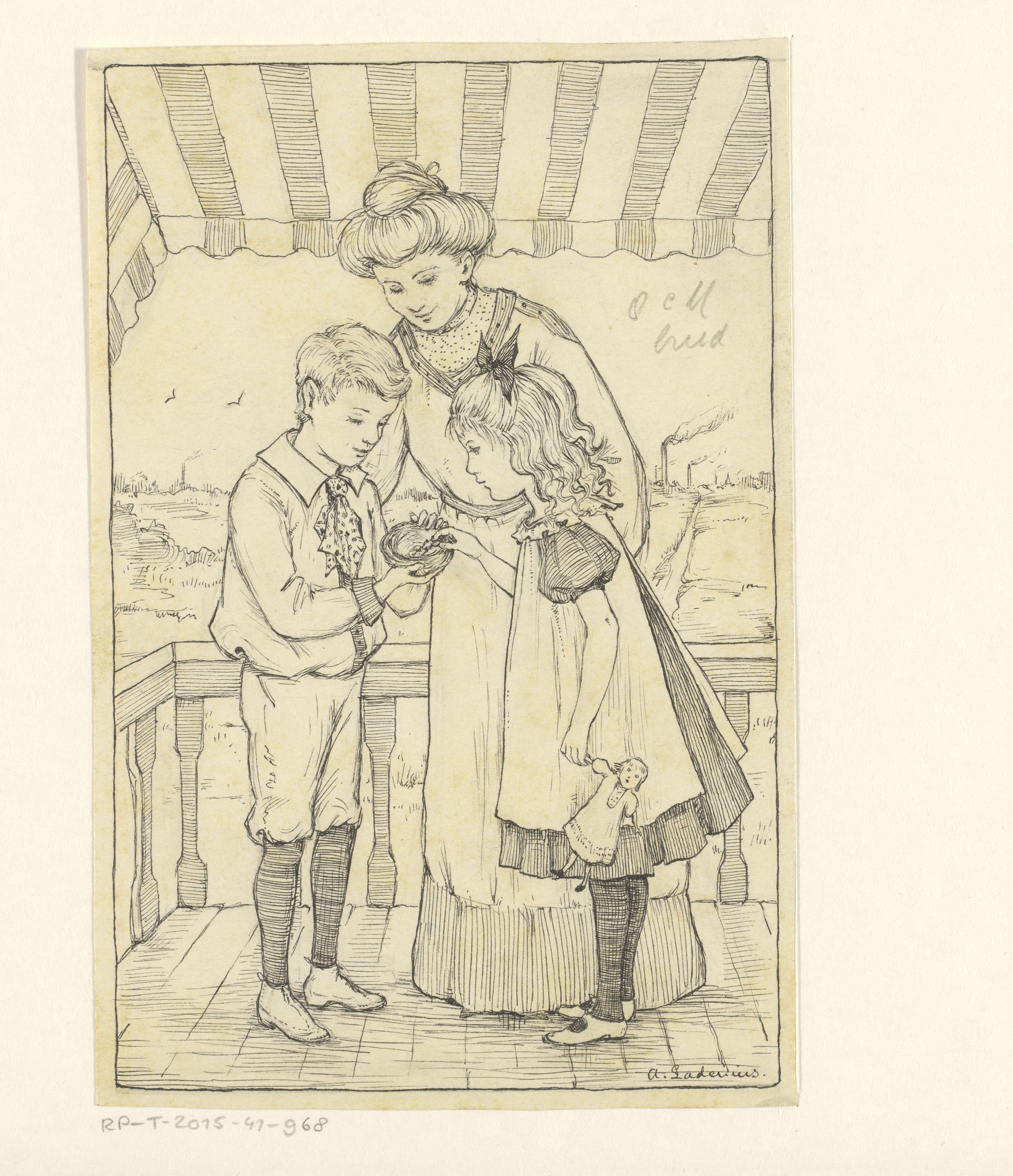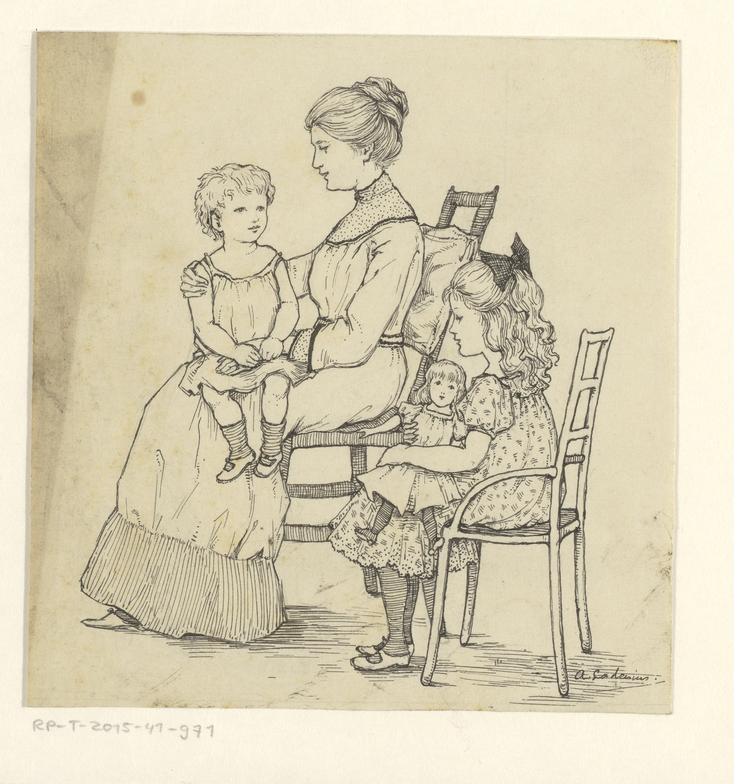 Moeder met kind en meisje met pop