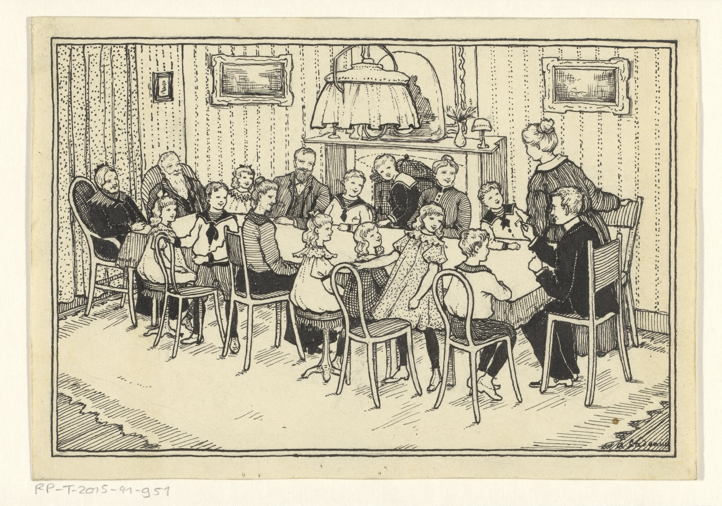 Zeventien familieleden om een tafel