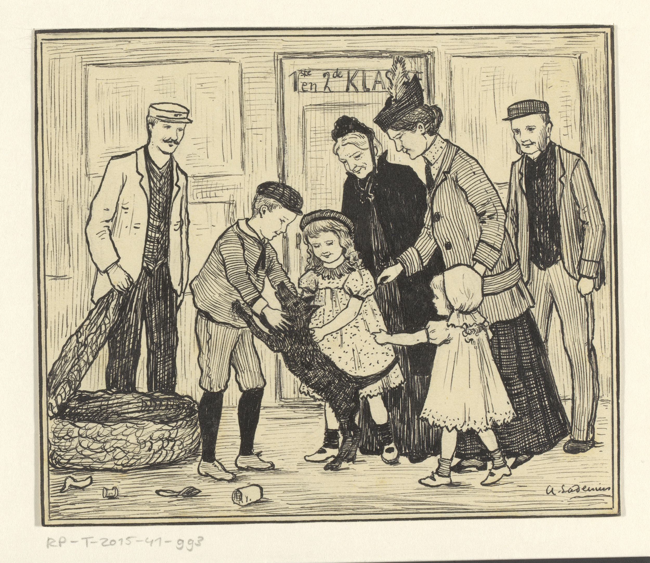 Twee jongens en poppen op theevisite