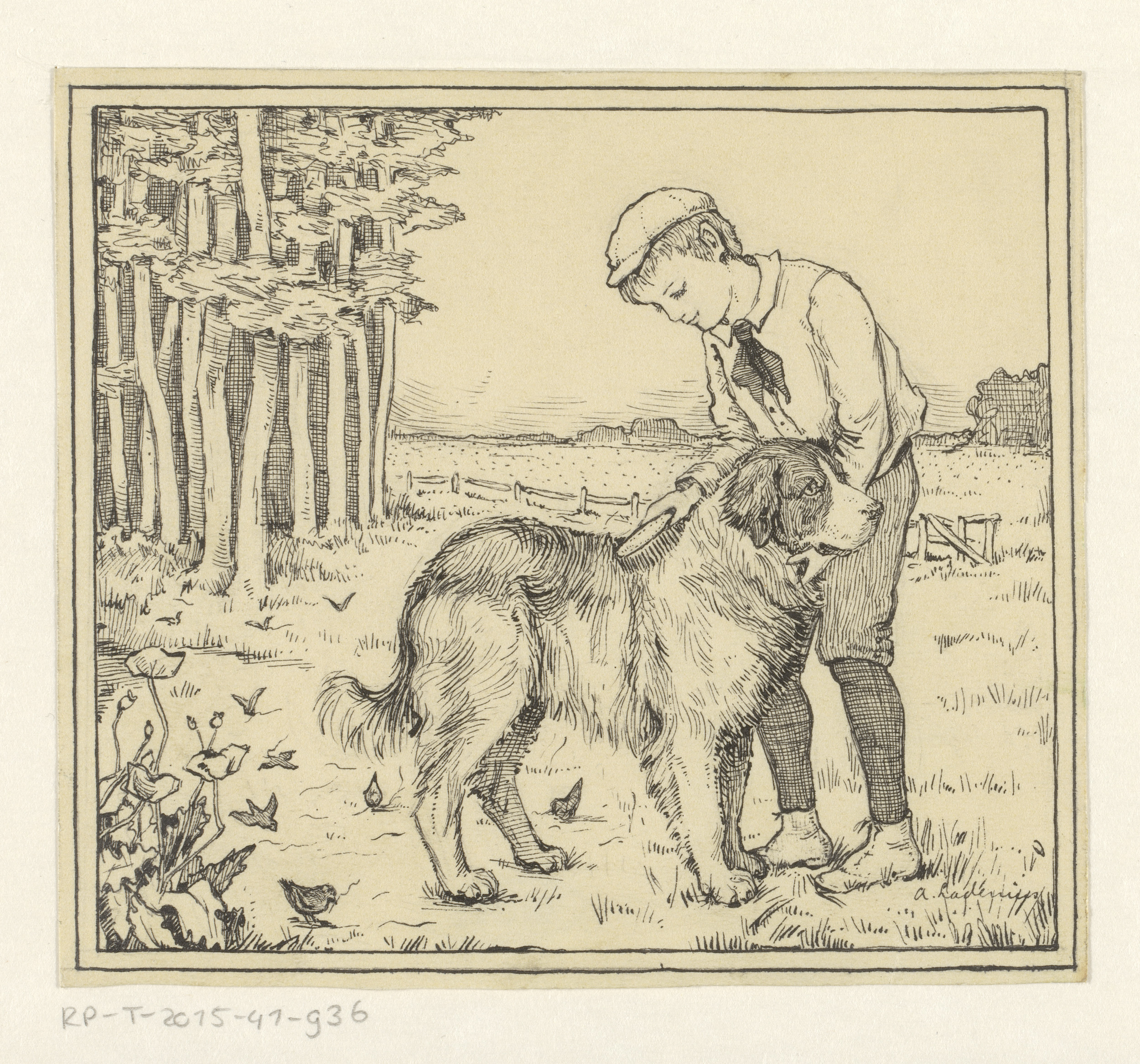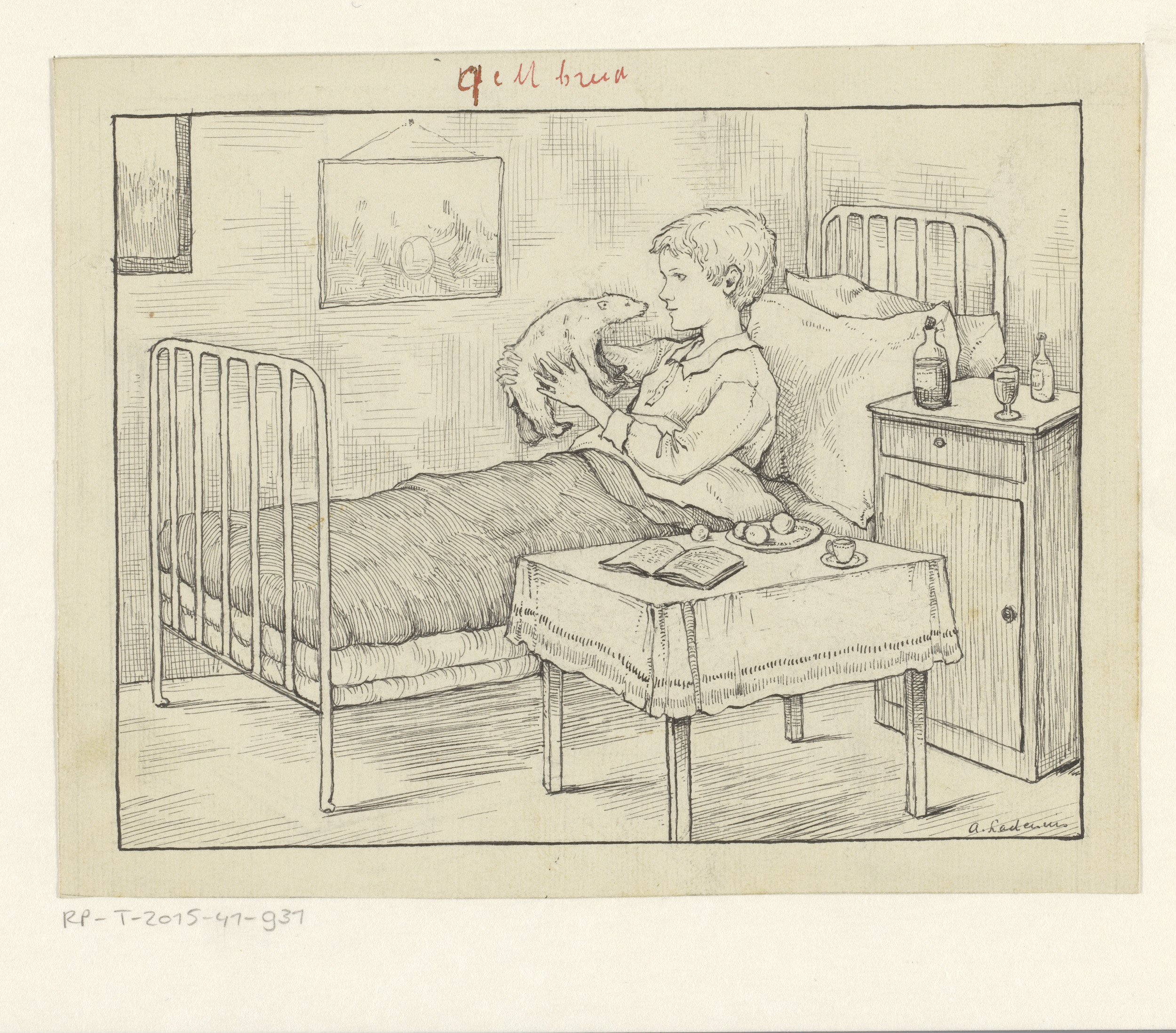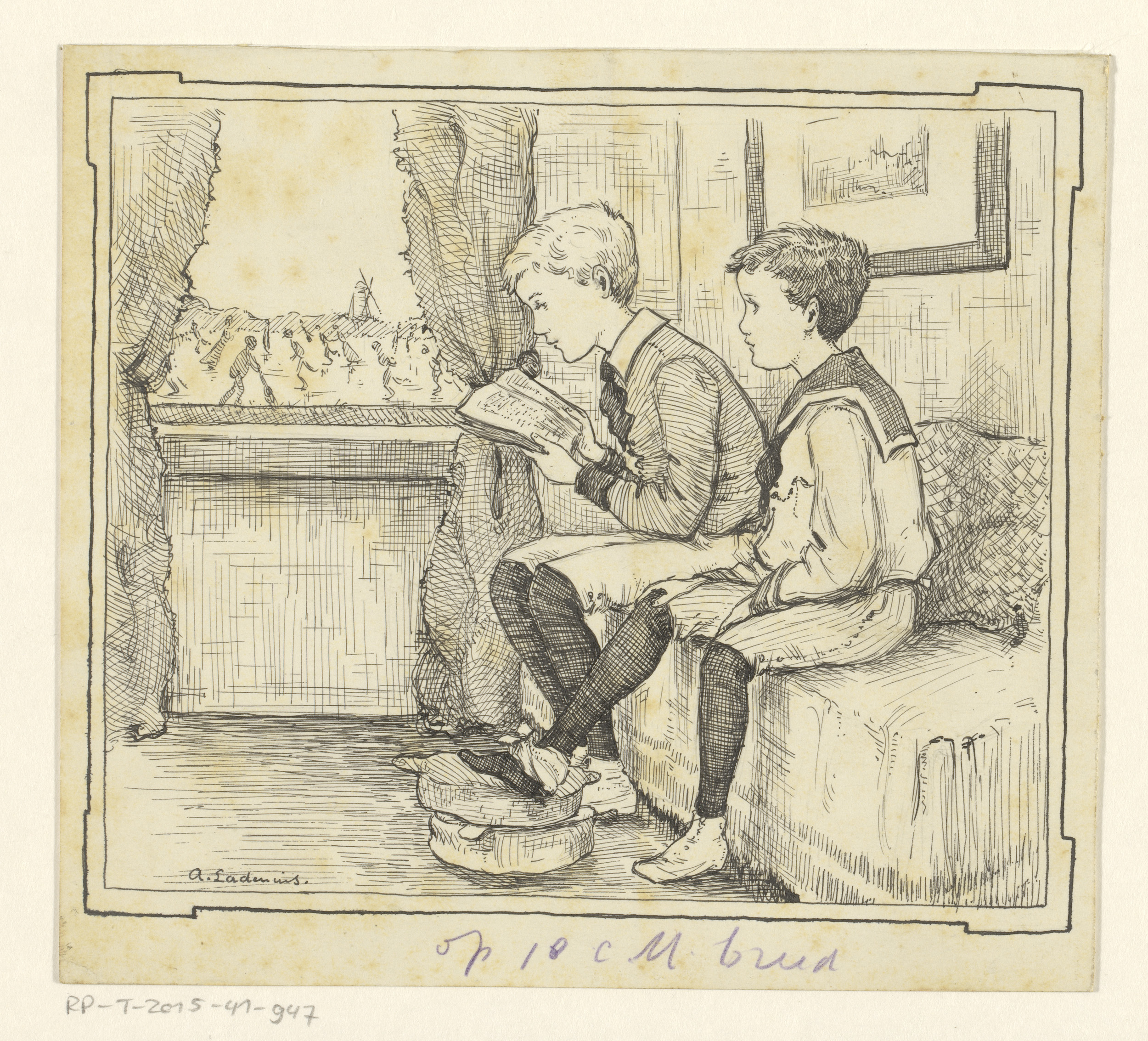 Jongen met een lei aan een lessenaar