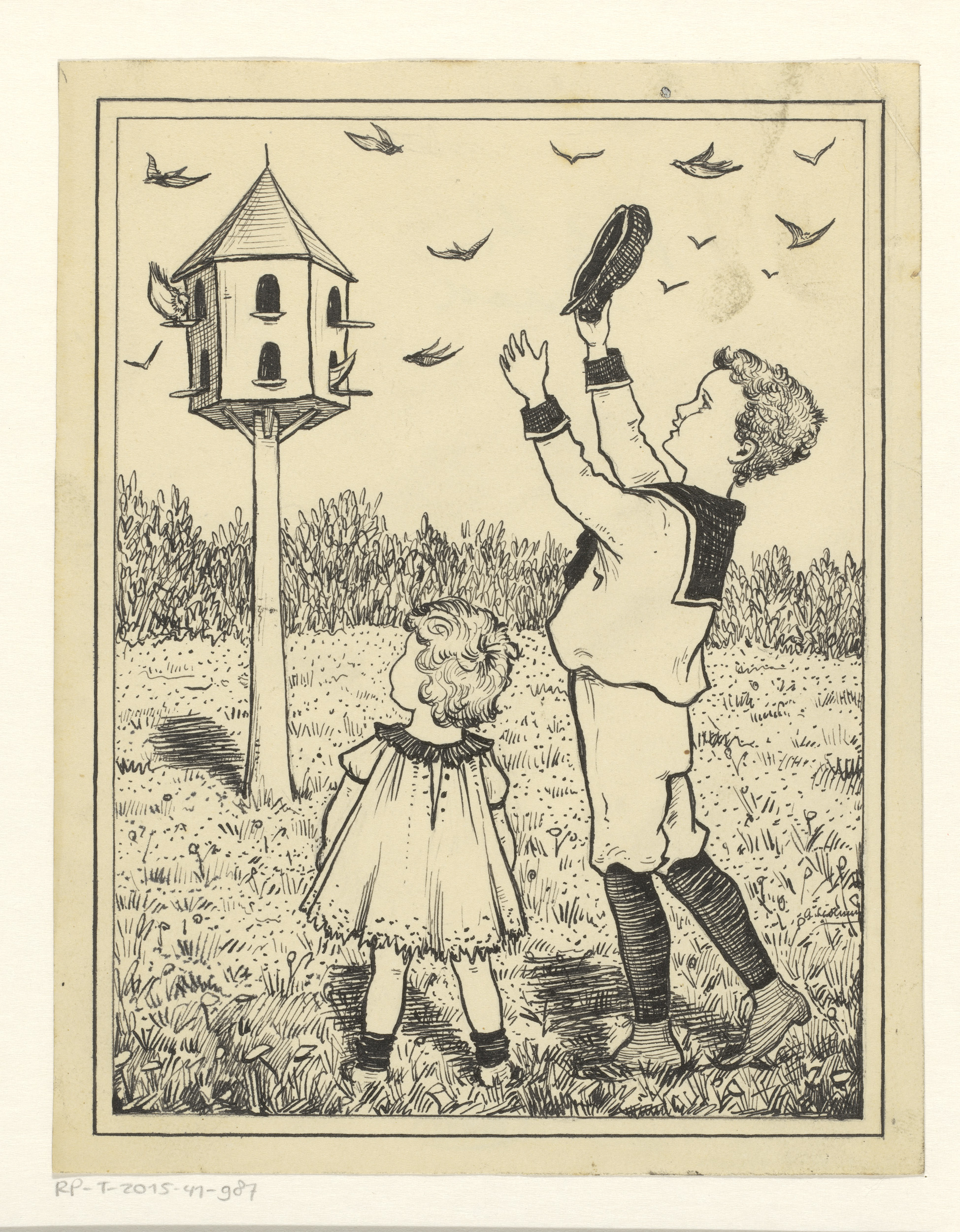 Kinderen bij een duiventil