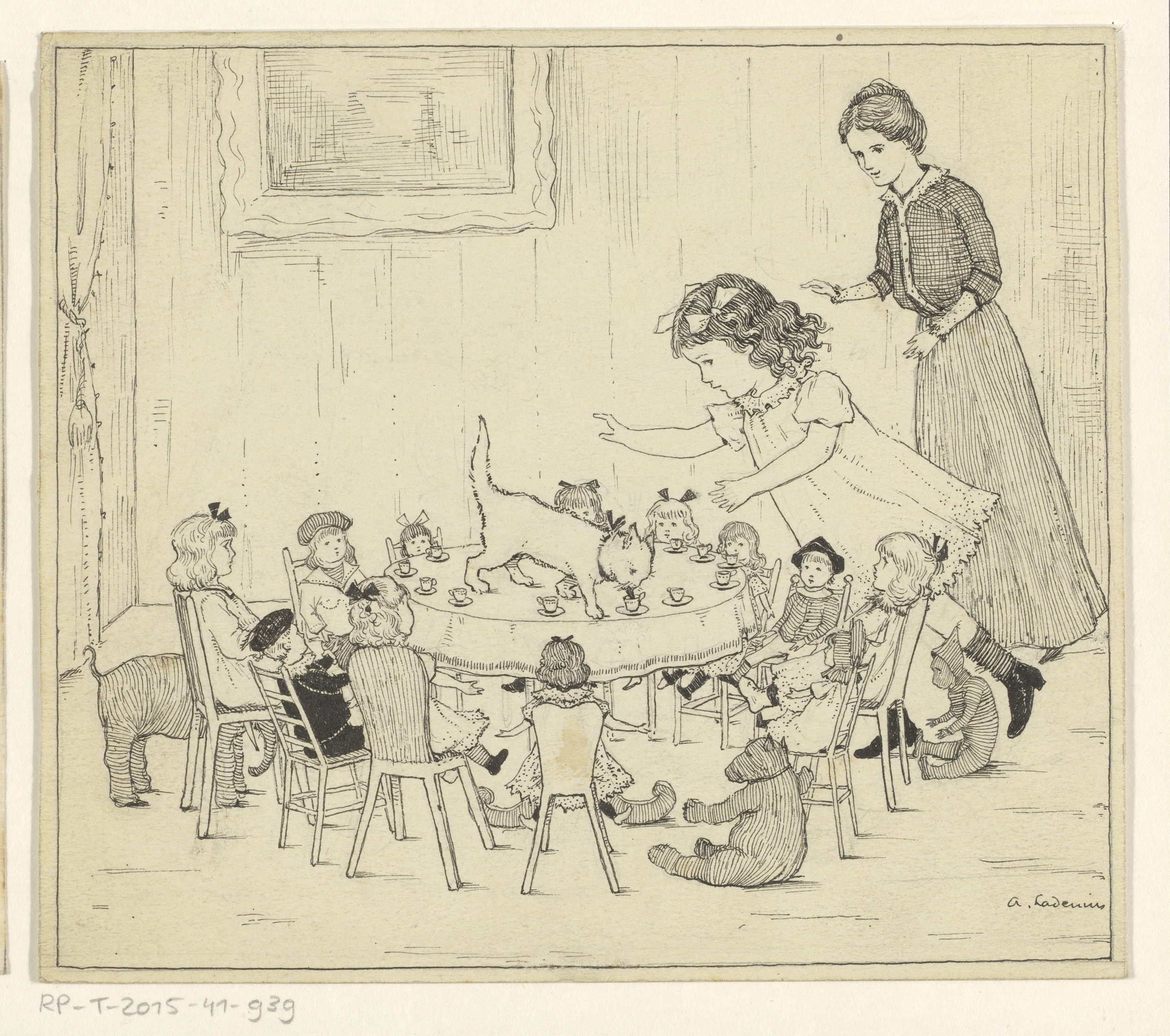 Meisjes en hun poppen op theevisite