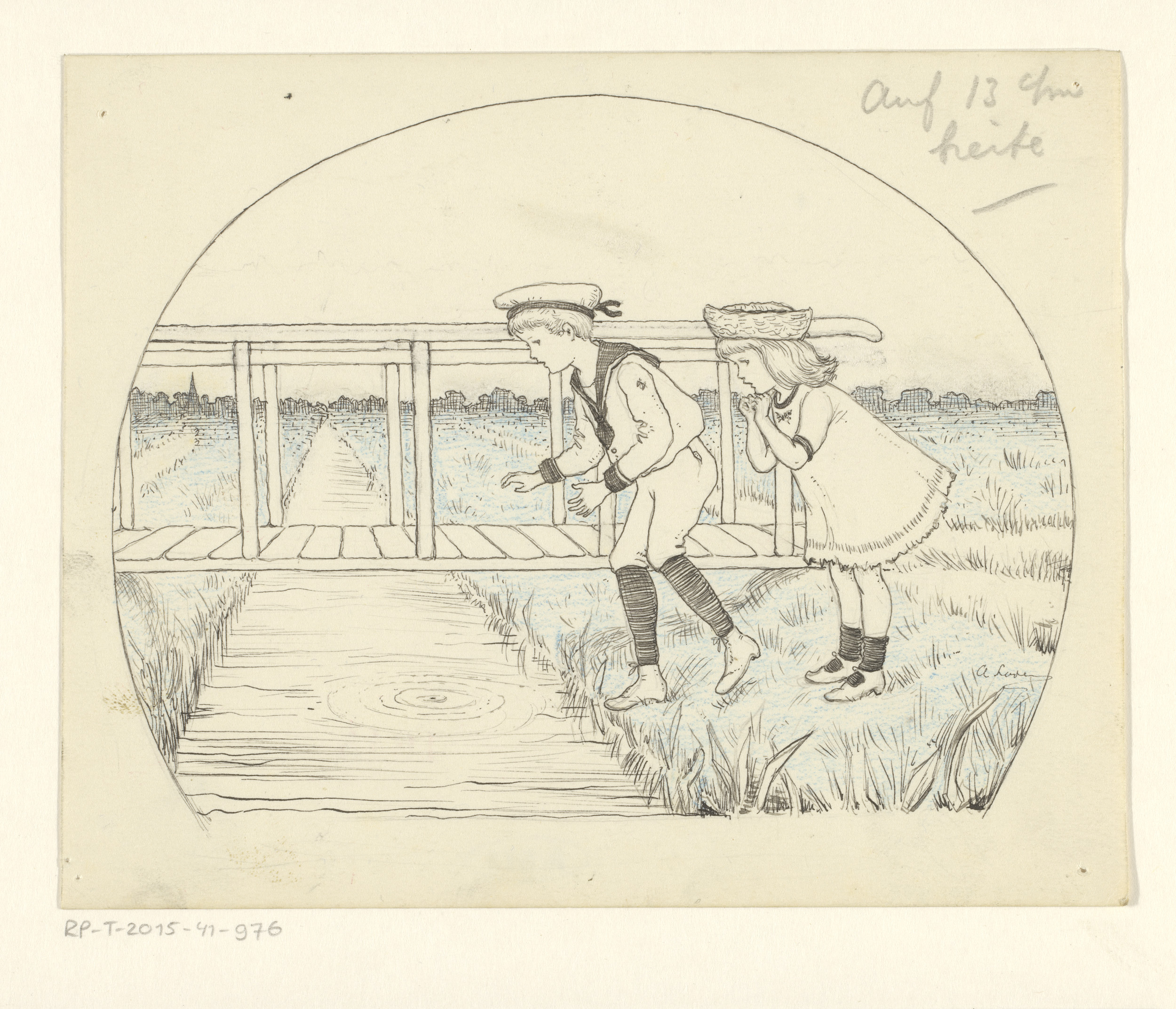 Jongen en meisje bij een sloot