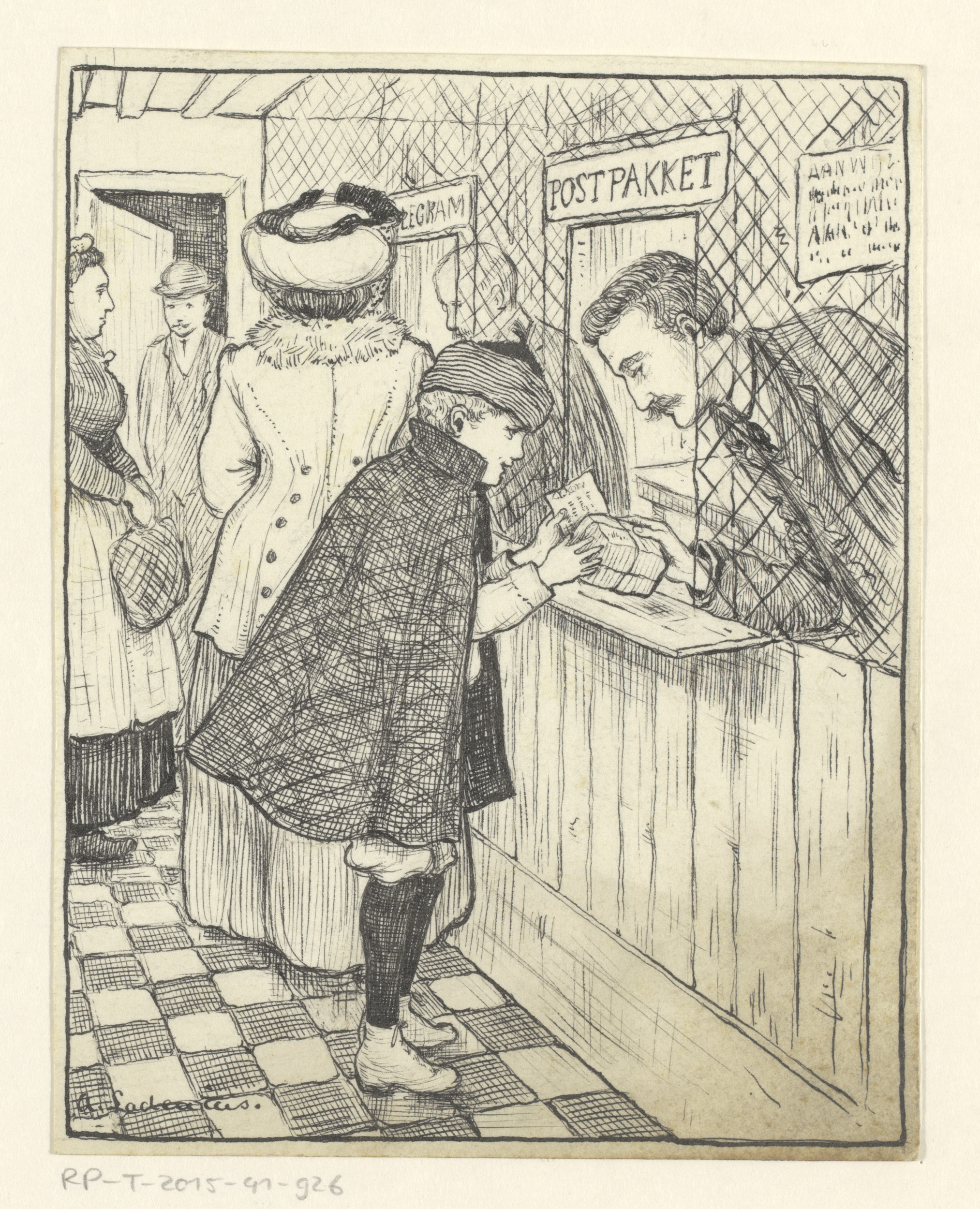 Jongen met pakket bij een postloket