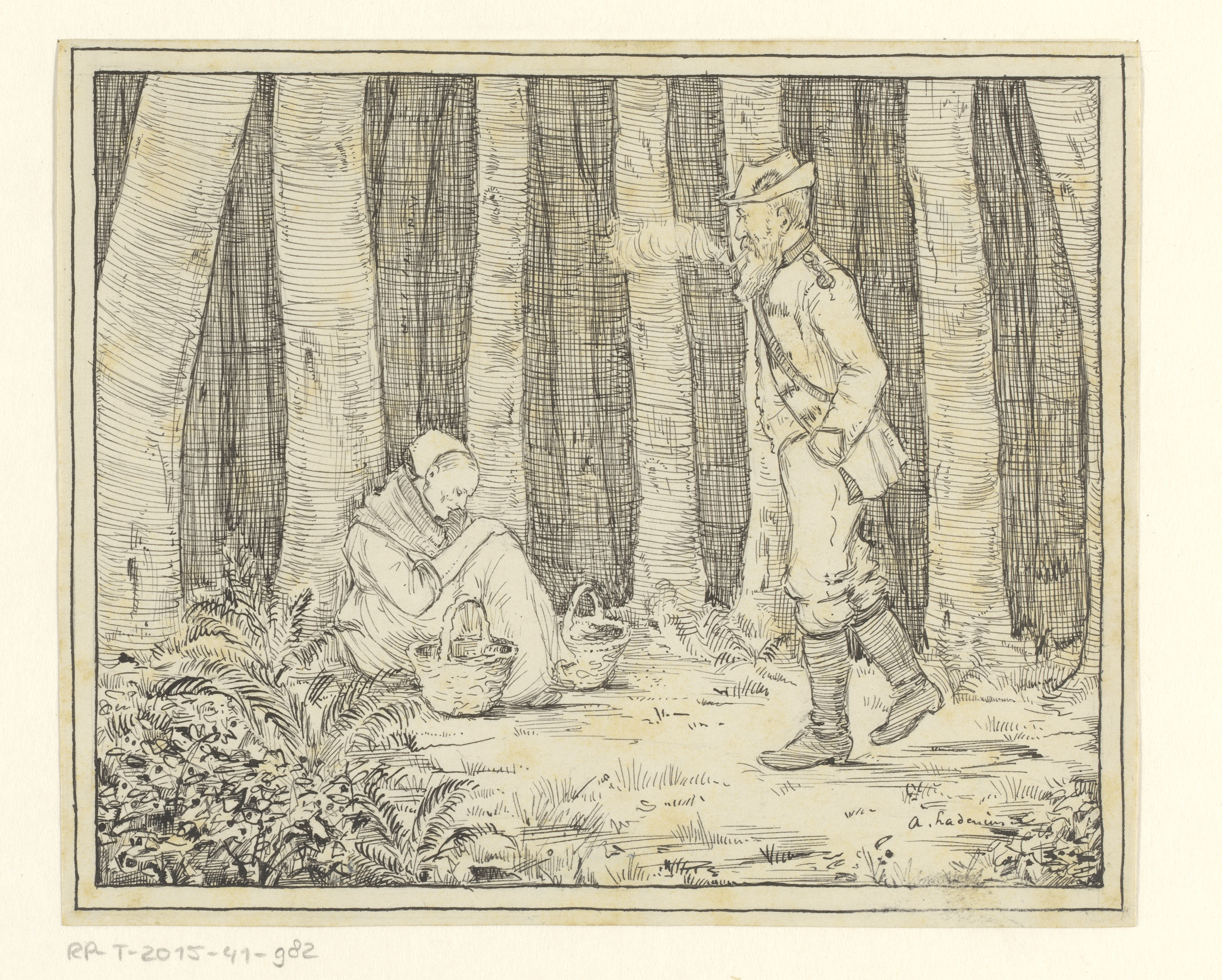 Militair en een oude vrouw in een bos