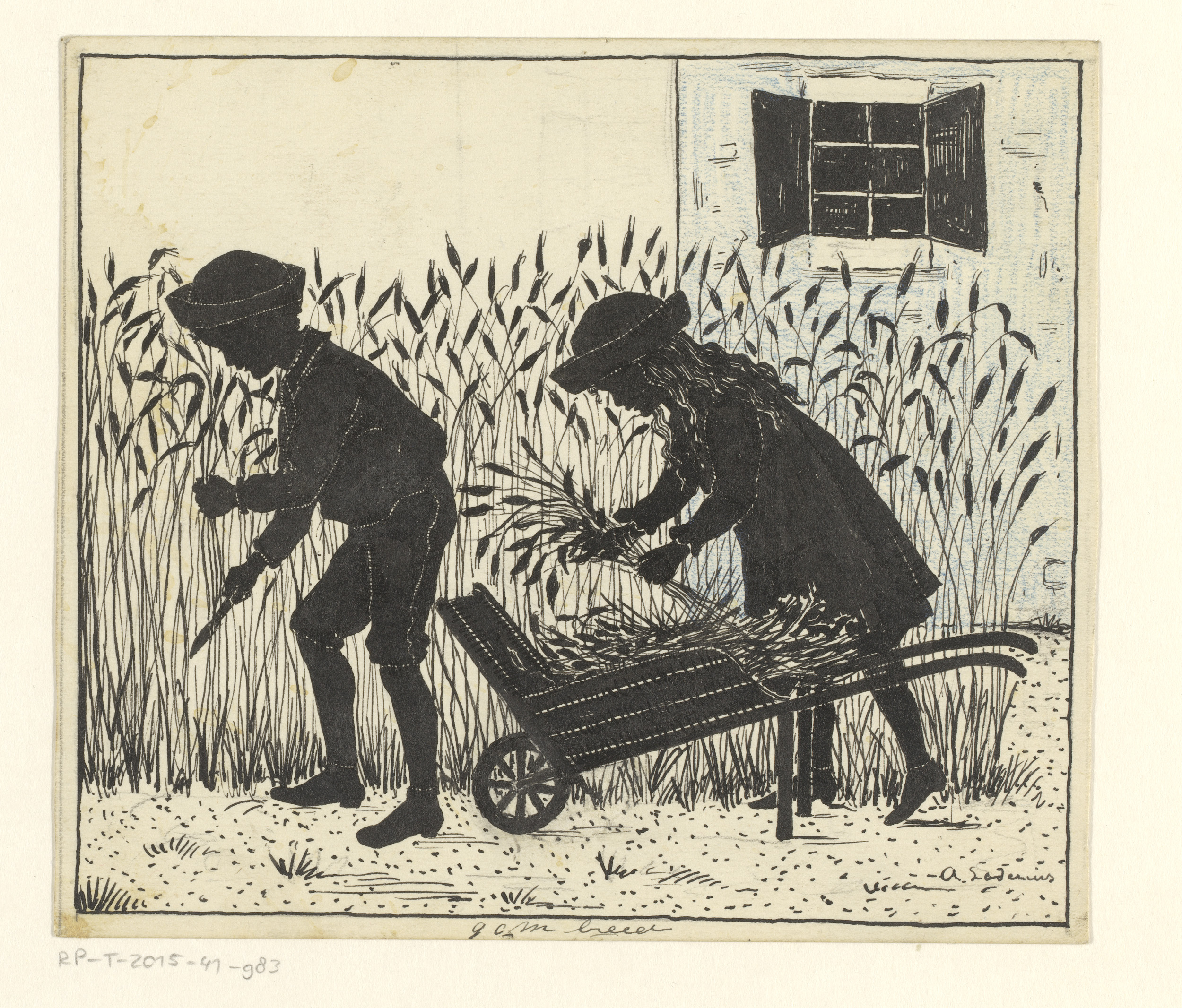 Jongen en meisje plukken rietstengels