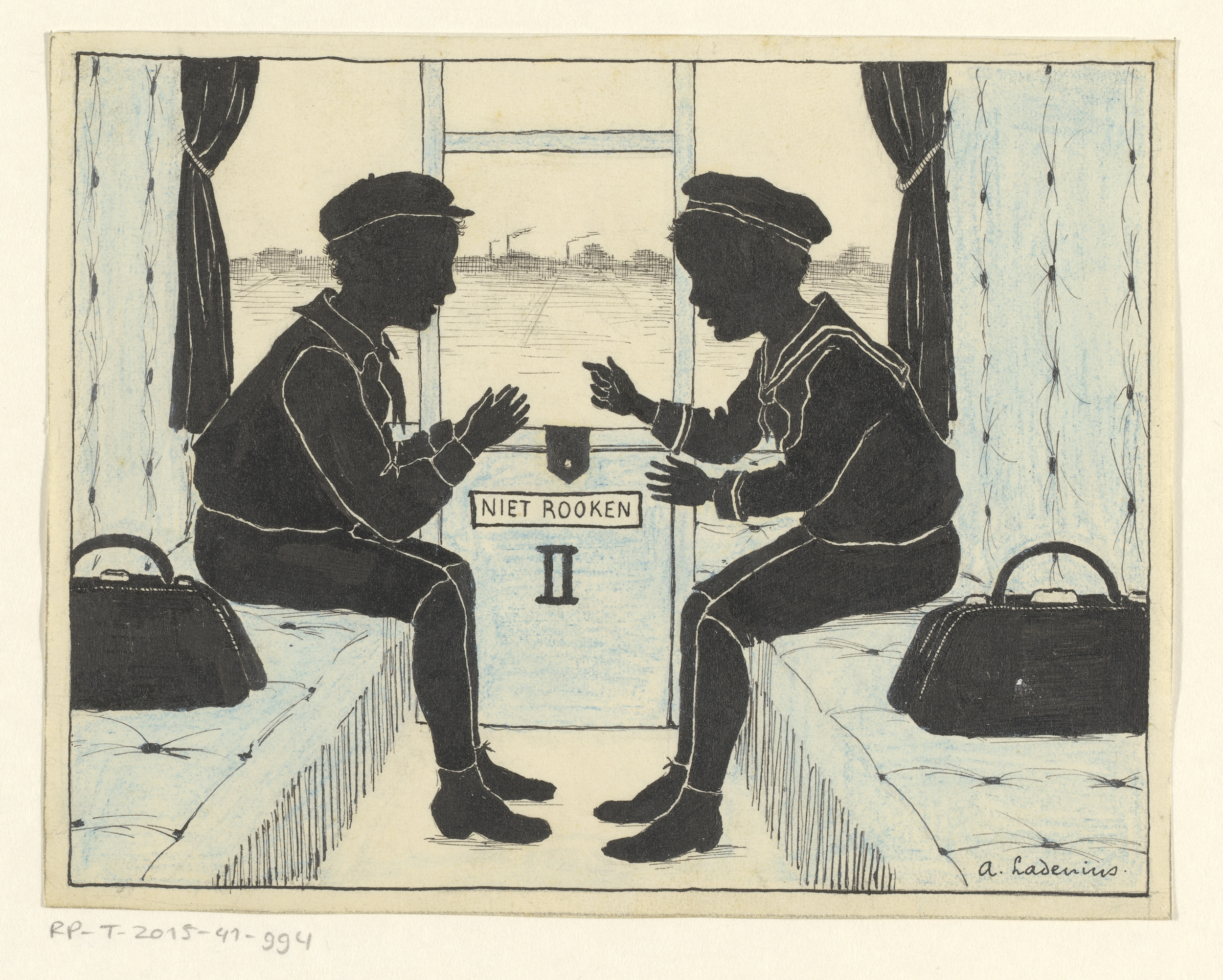 Twee jongens in een treincoupé