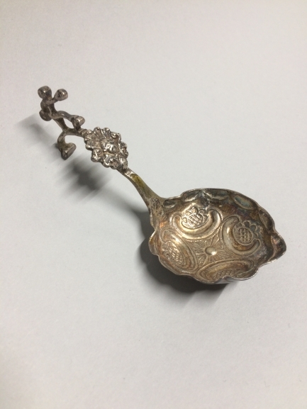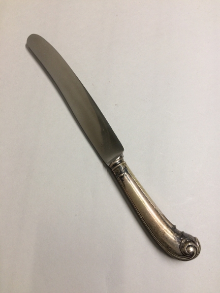 Zilveren tafelmes met op de top een in gegoten zilve...