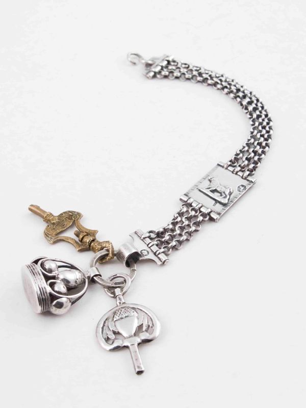 Zilveren breloque voor een horloge met drie kettinkj...