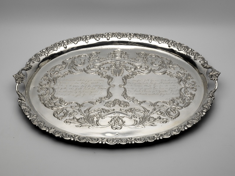 Ovaal dienblad met ornamenten en opstaande, uitstulp...