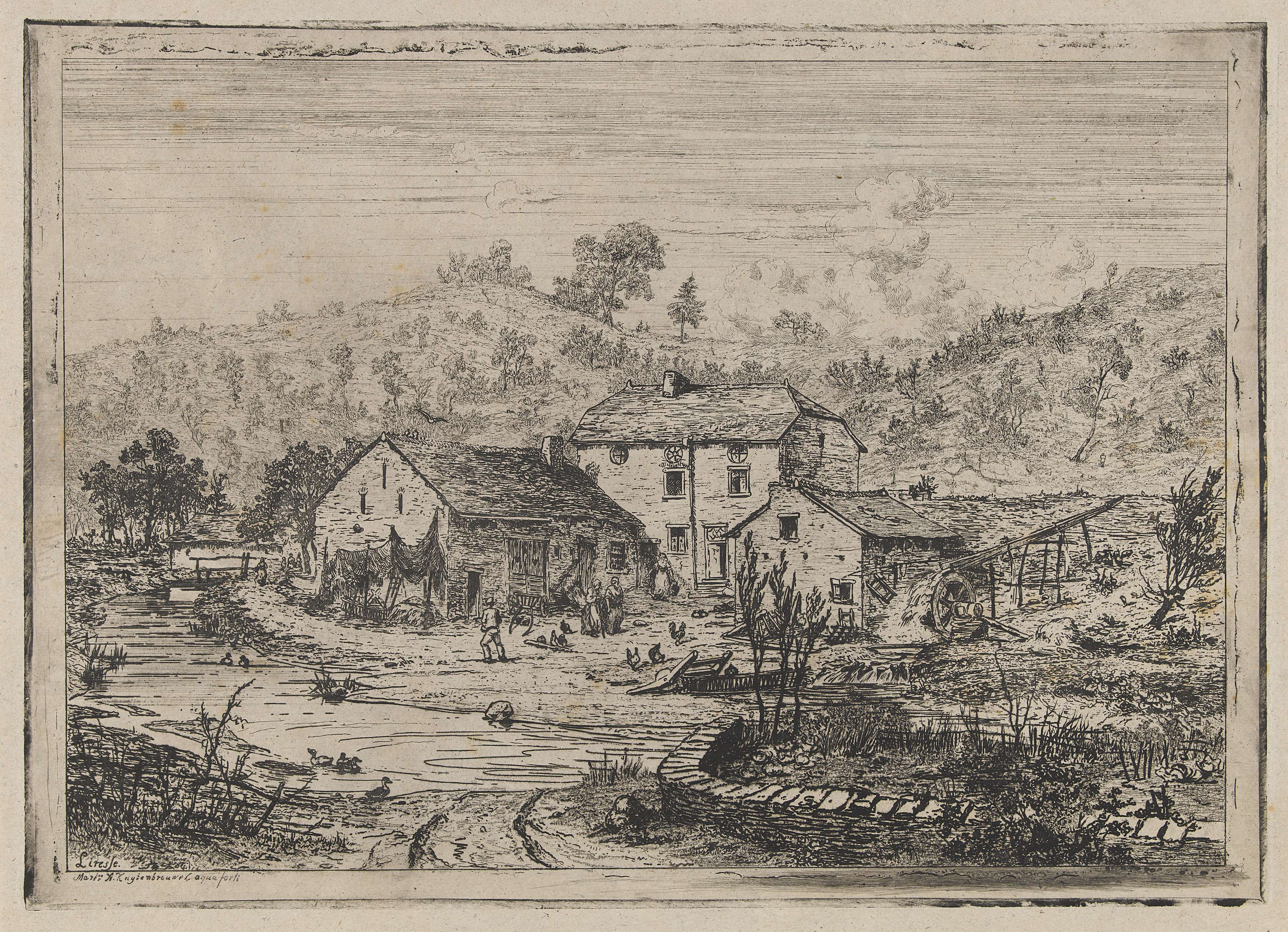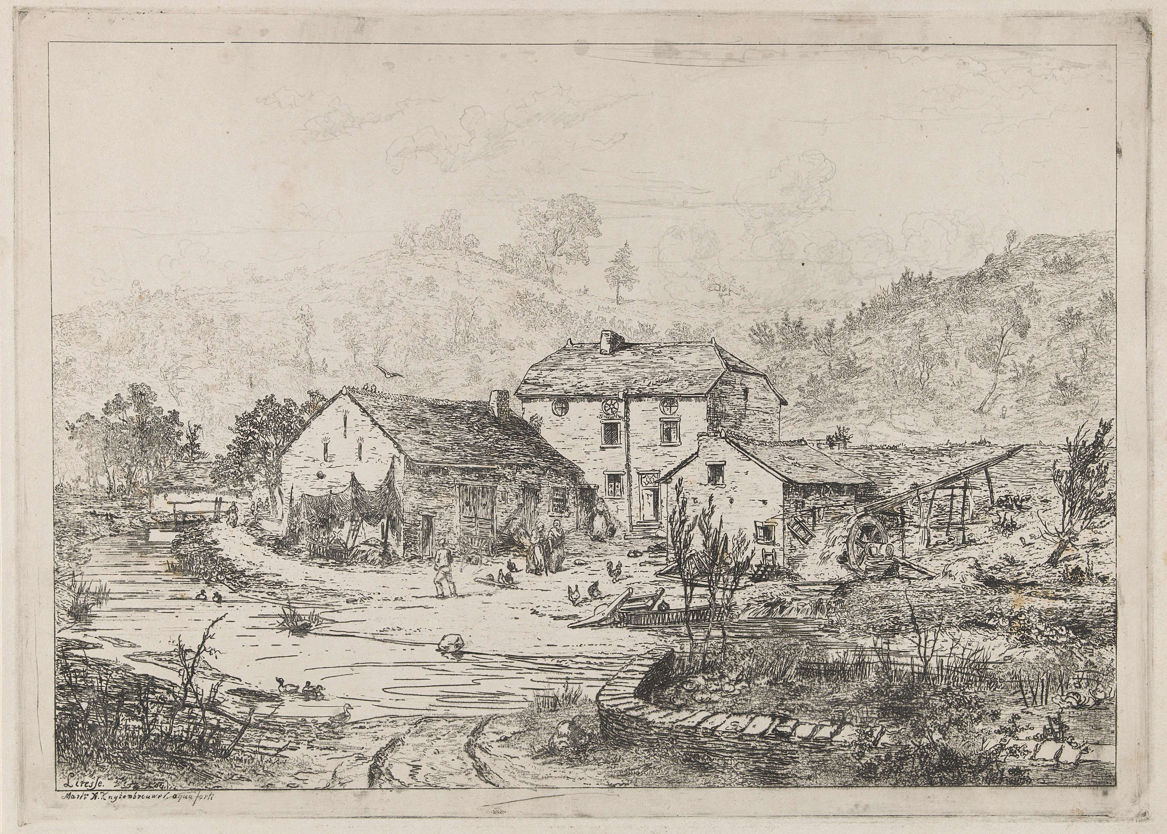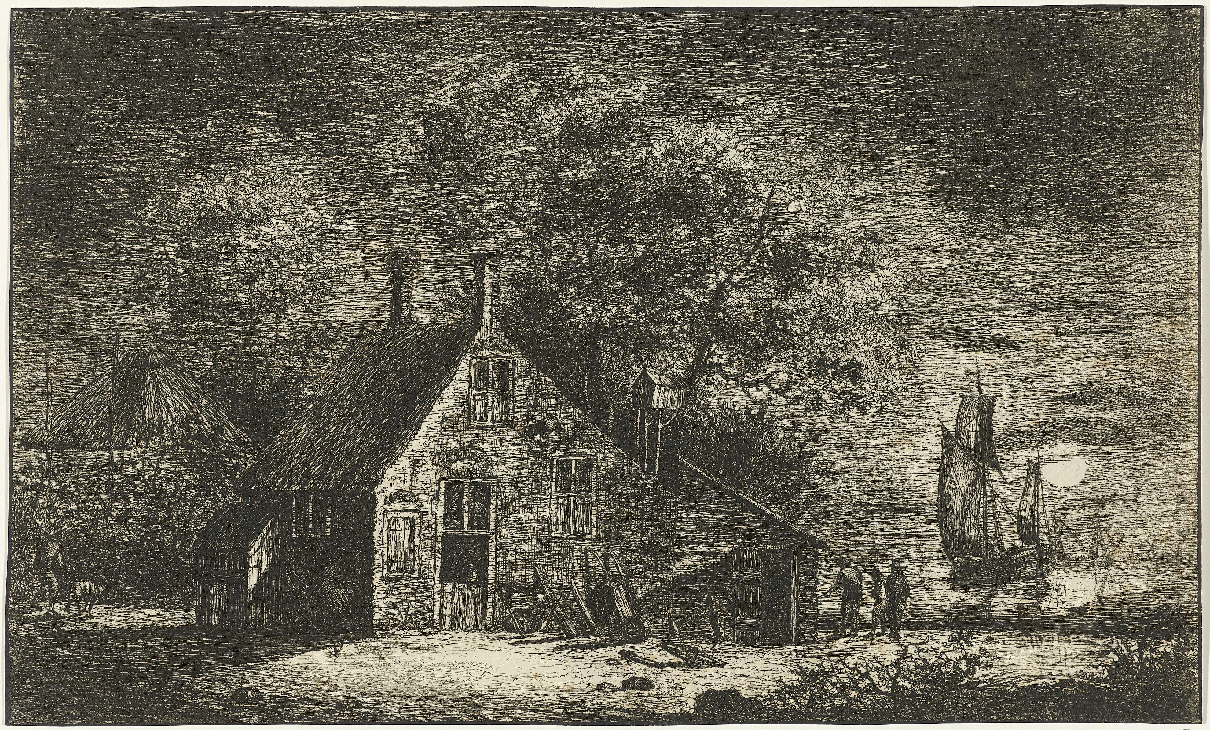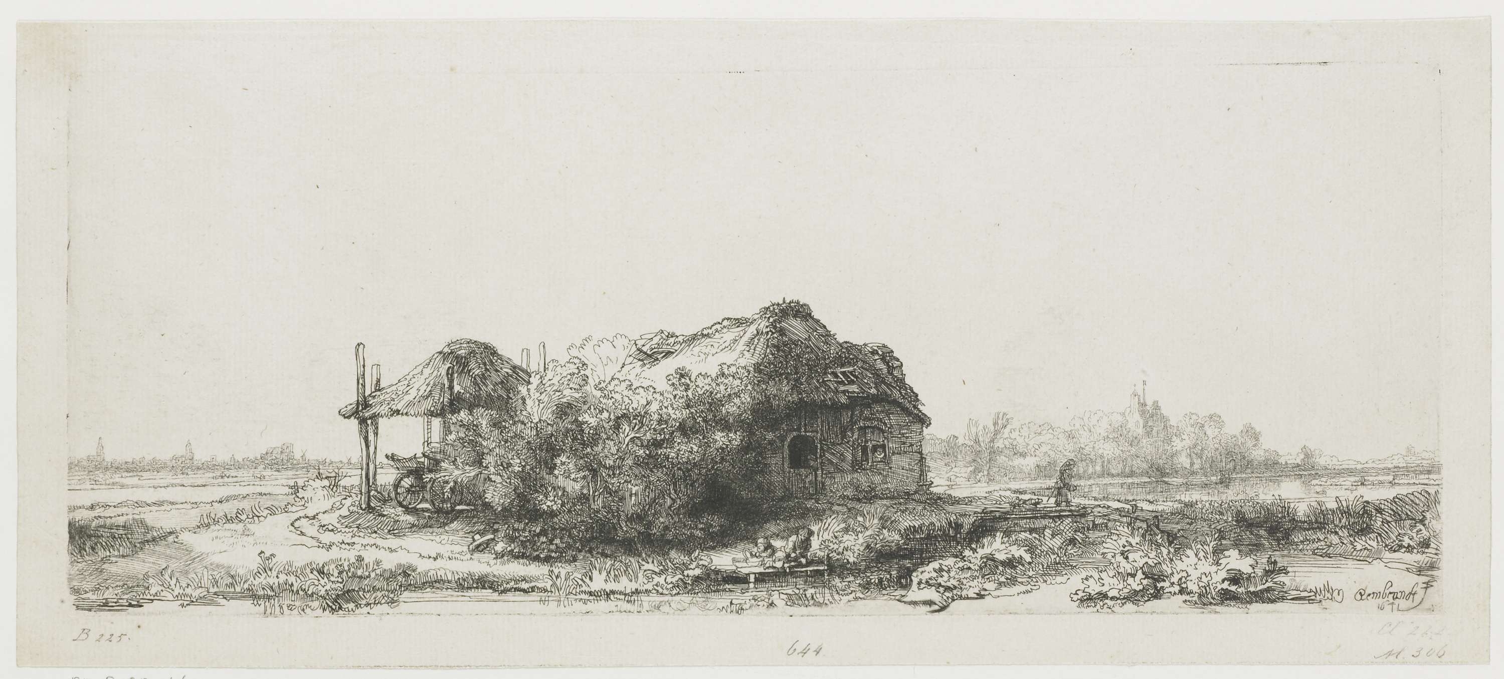 Landscape with cottages and a hay barn: oblong