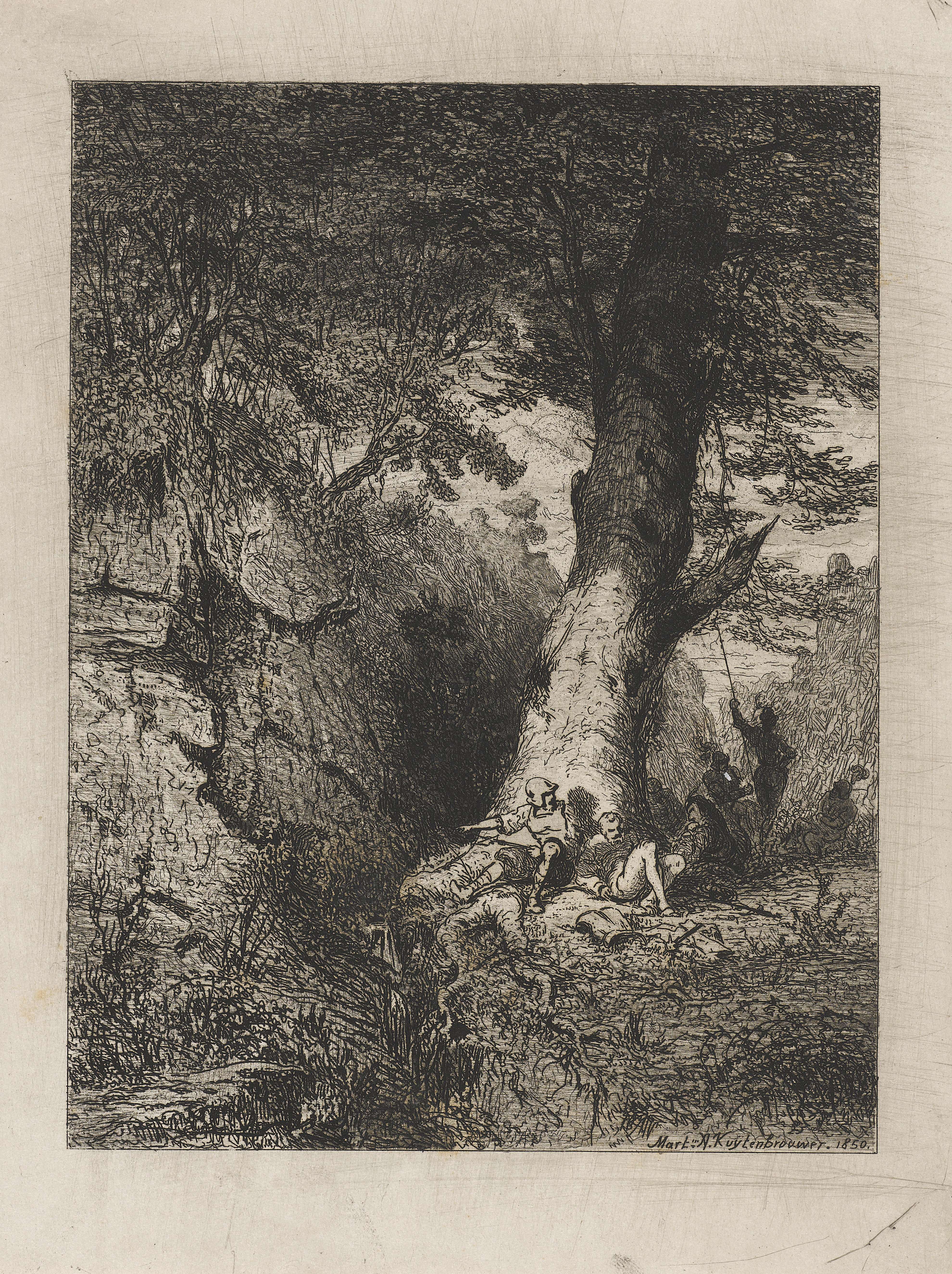 Rustende krijgsmannen onder een boom