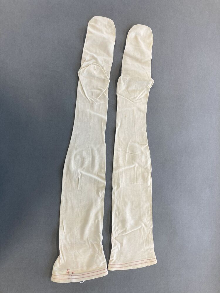 Paar wit katoenen machinaal gebreide kousen,gemerkt ...