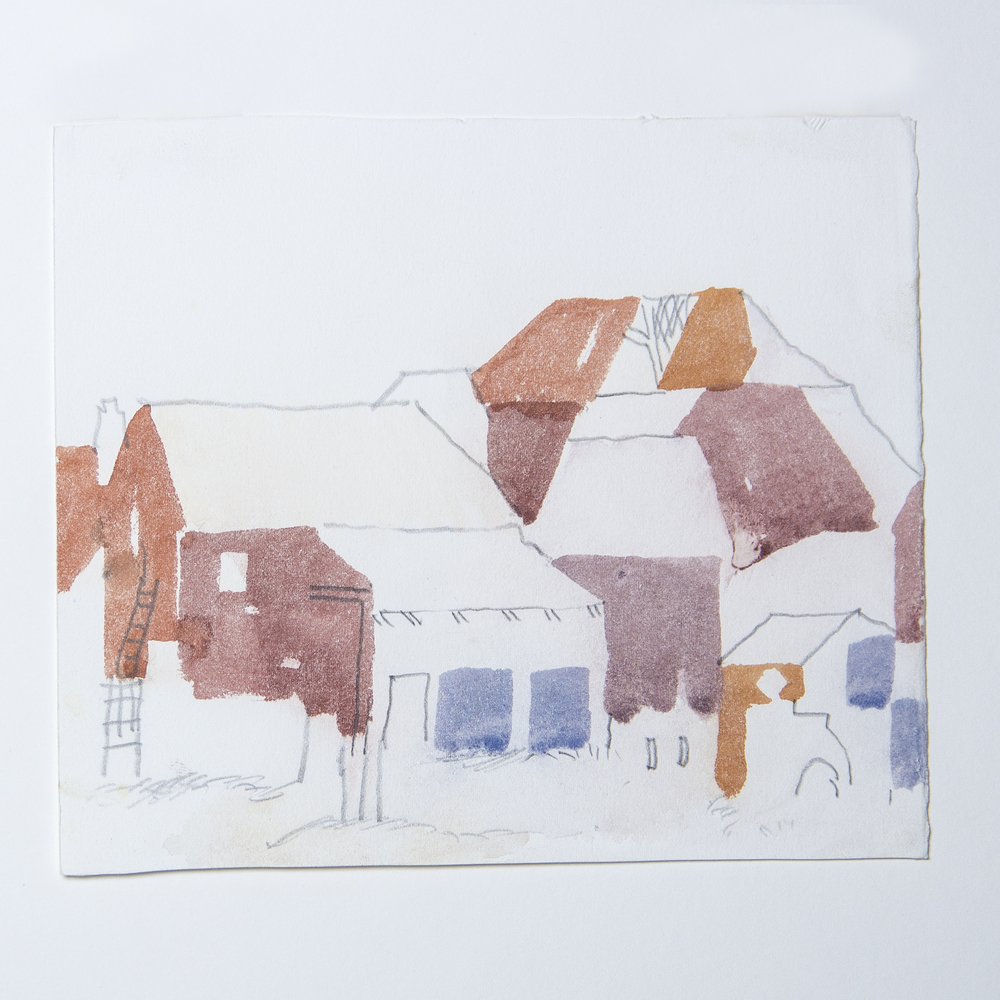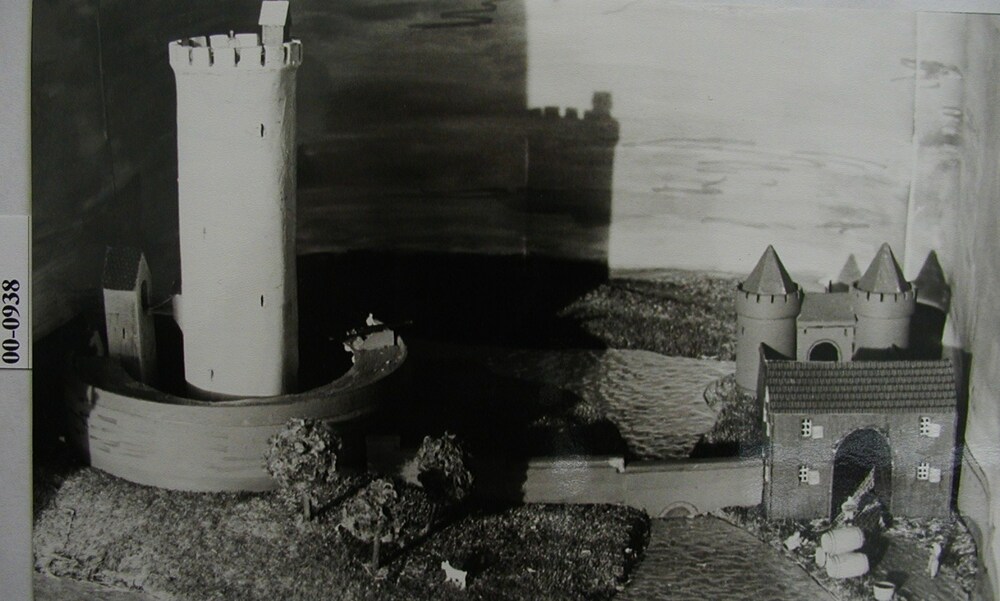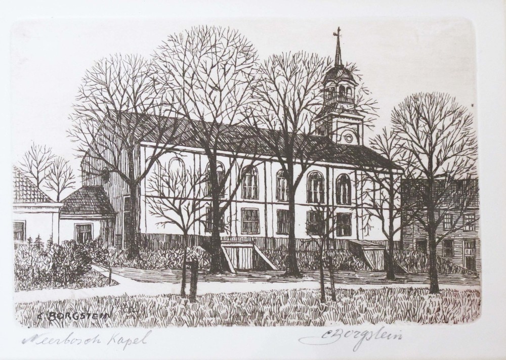 Tegeltableau in zeefdruk, met voorstelling: decor Su...