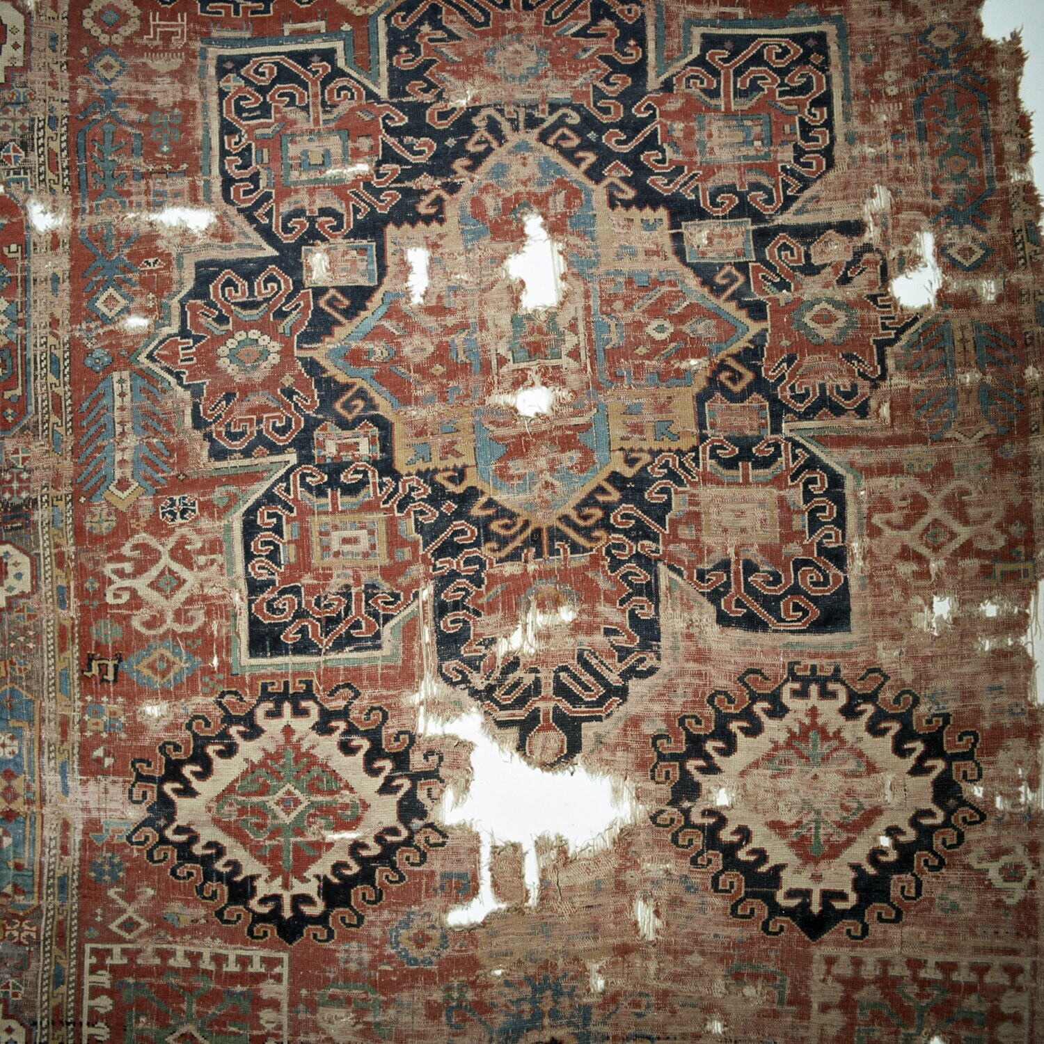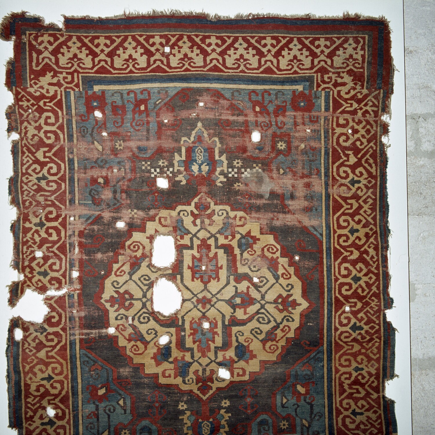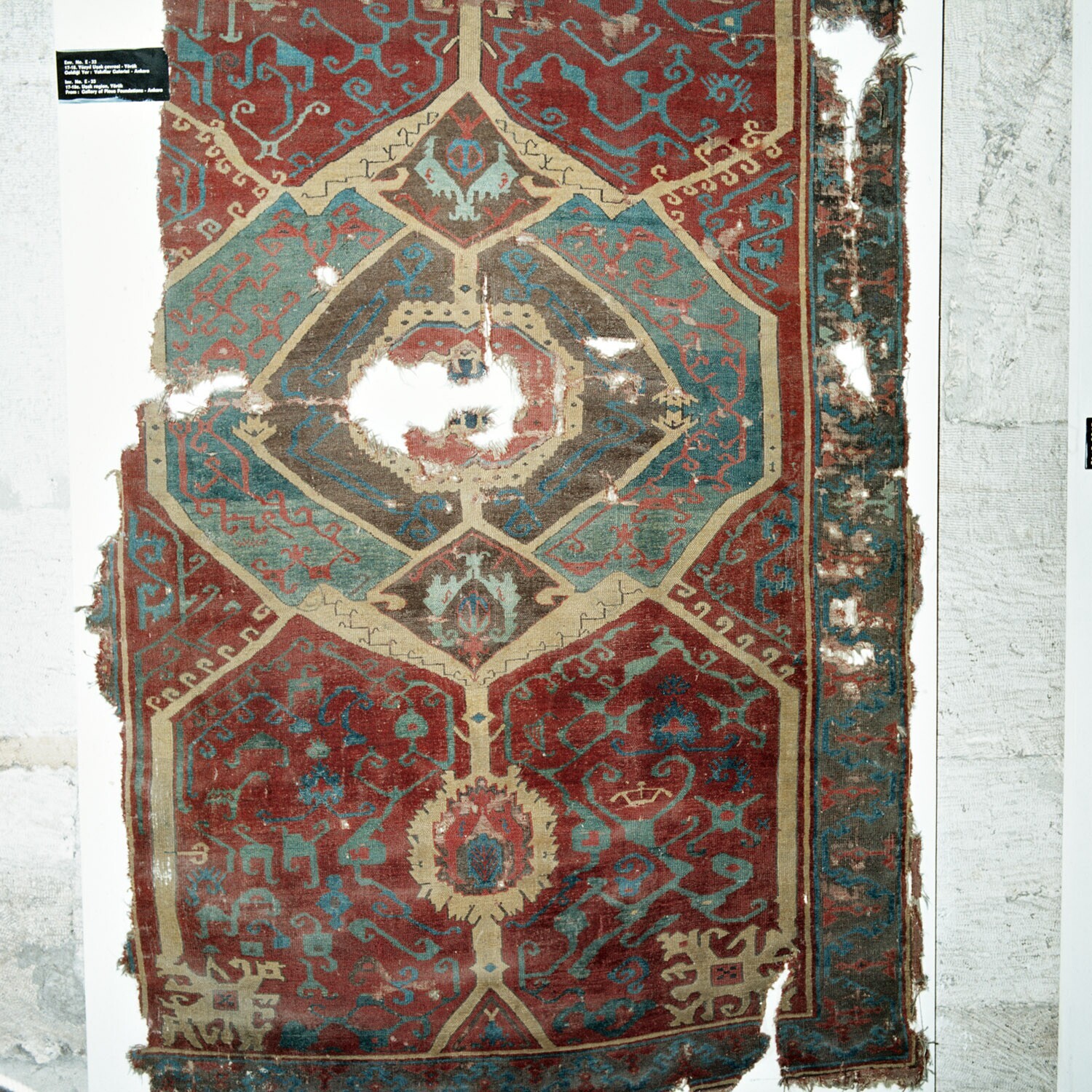 Antiek Turks tapijt tentoongesteld in één van de bij...