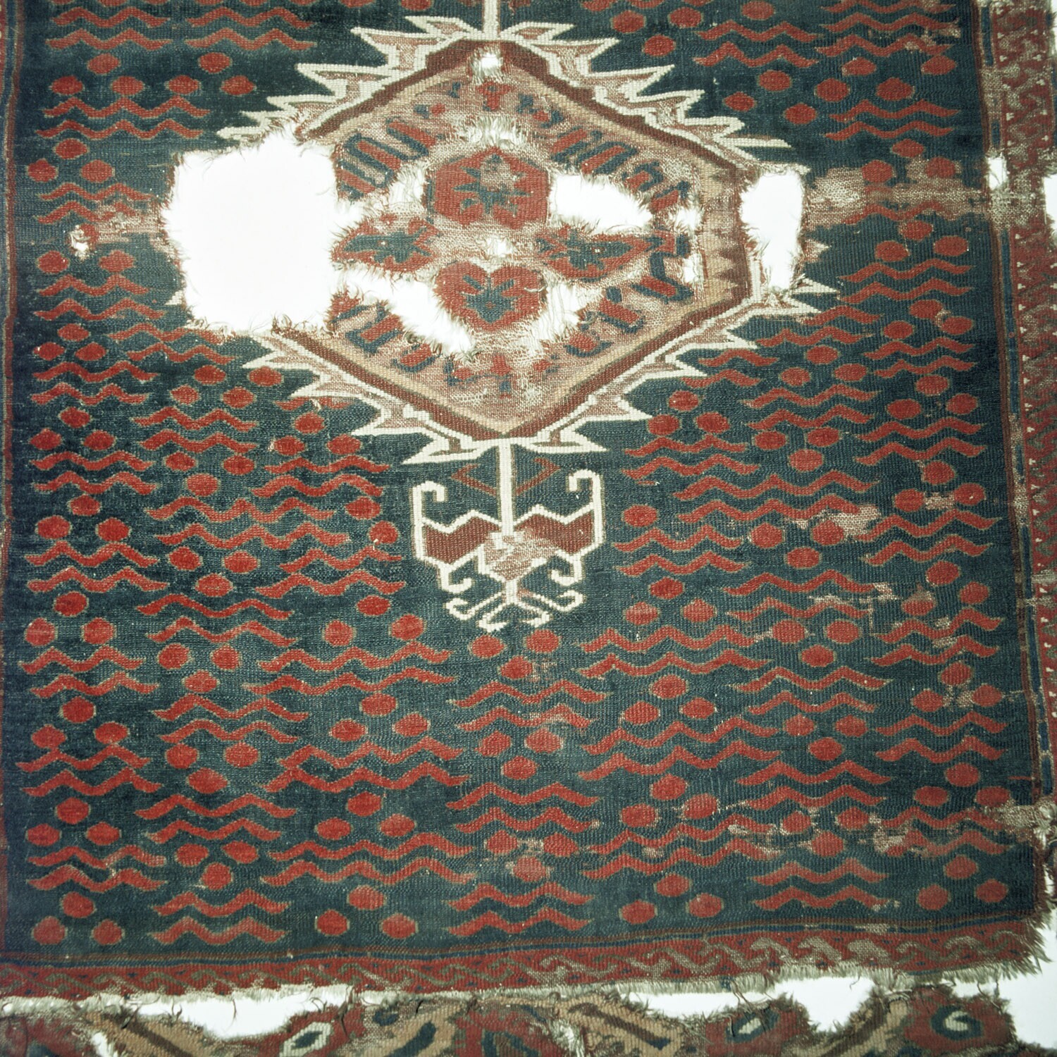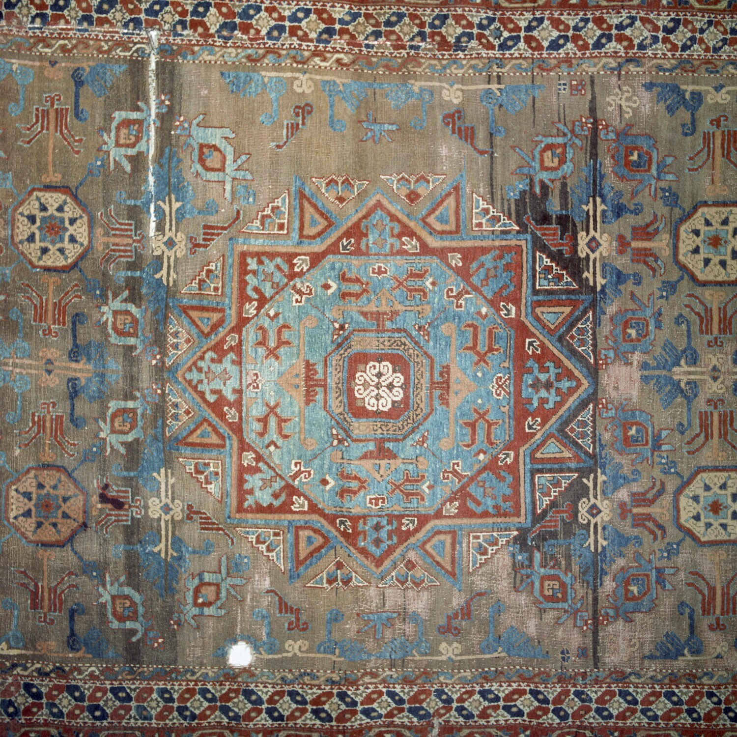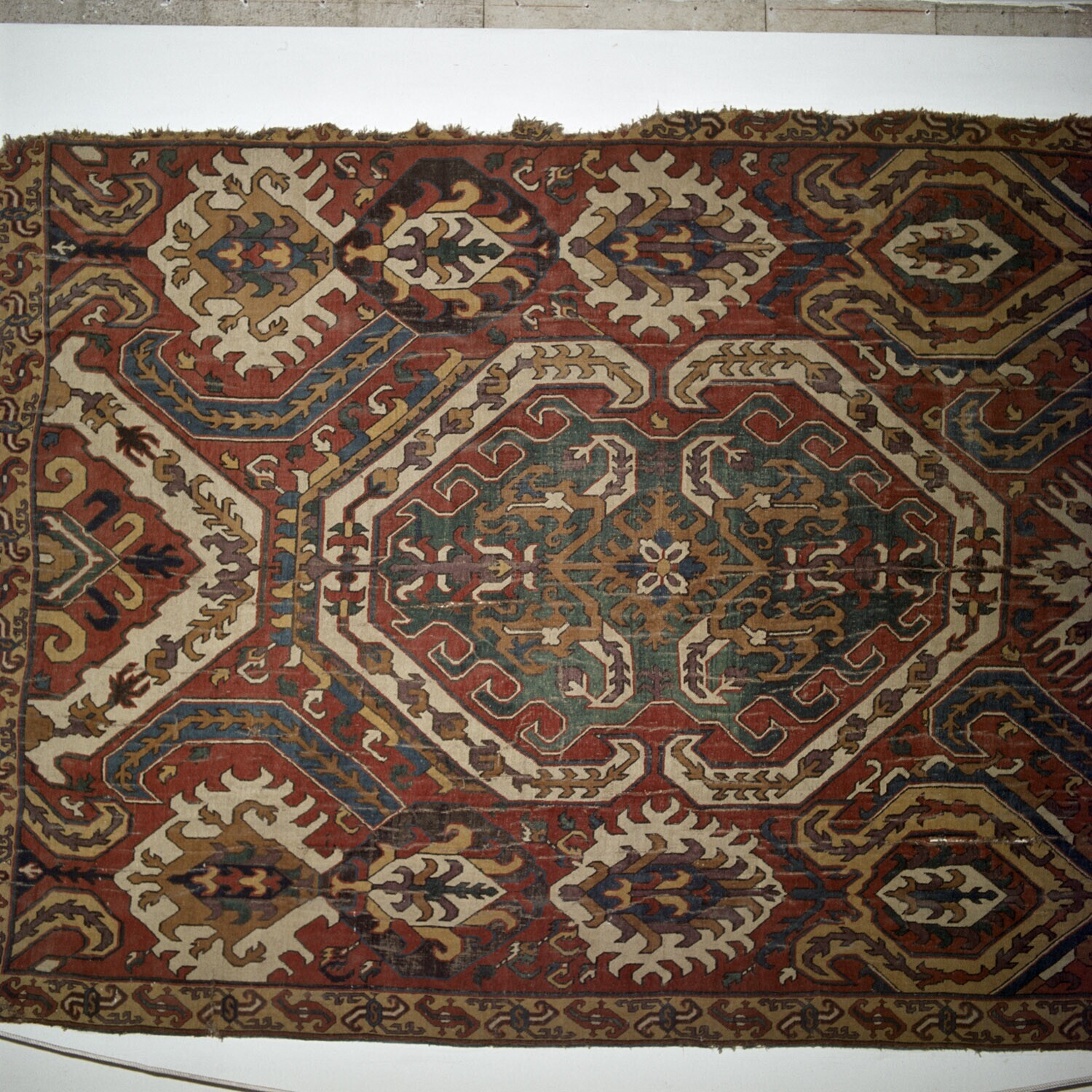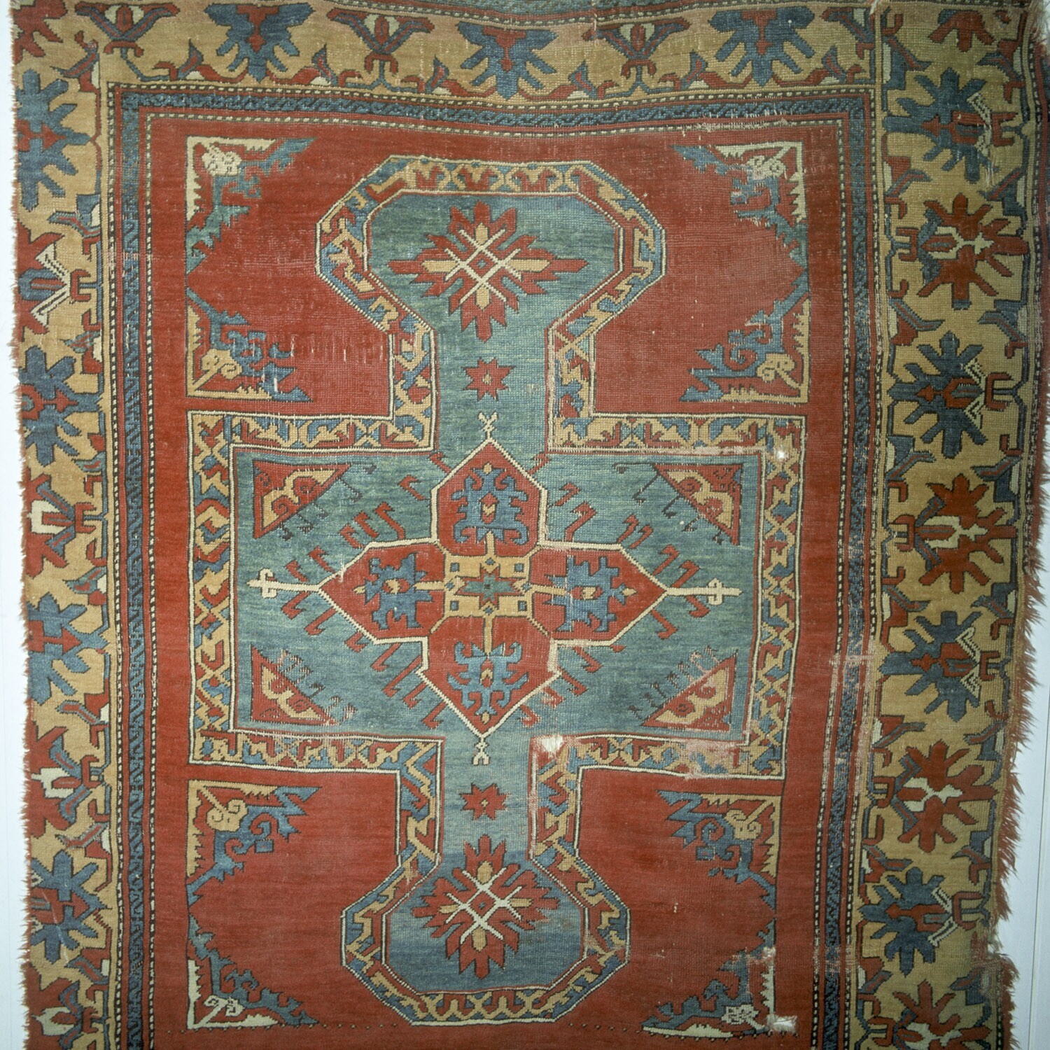 Antiek Turks tapijt tentoongesteld in één van de bij...