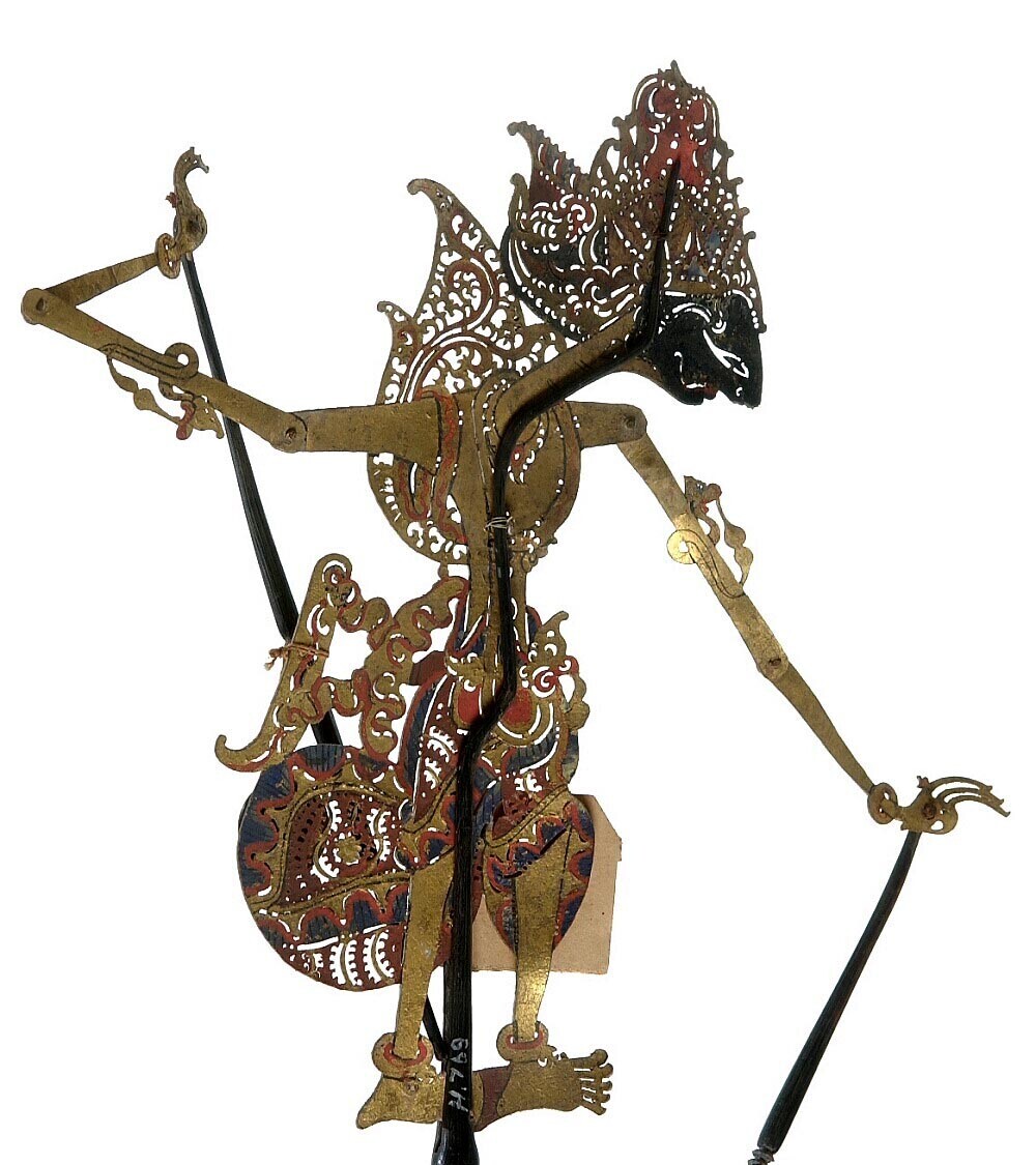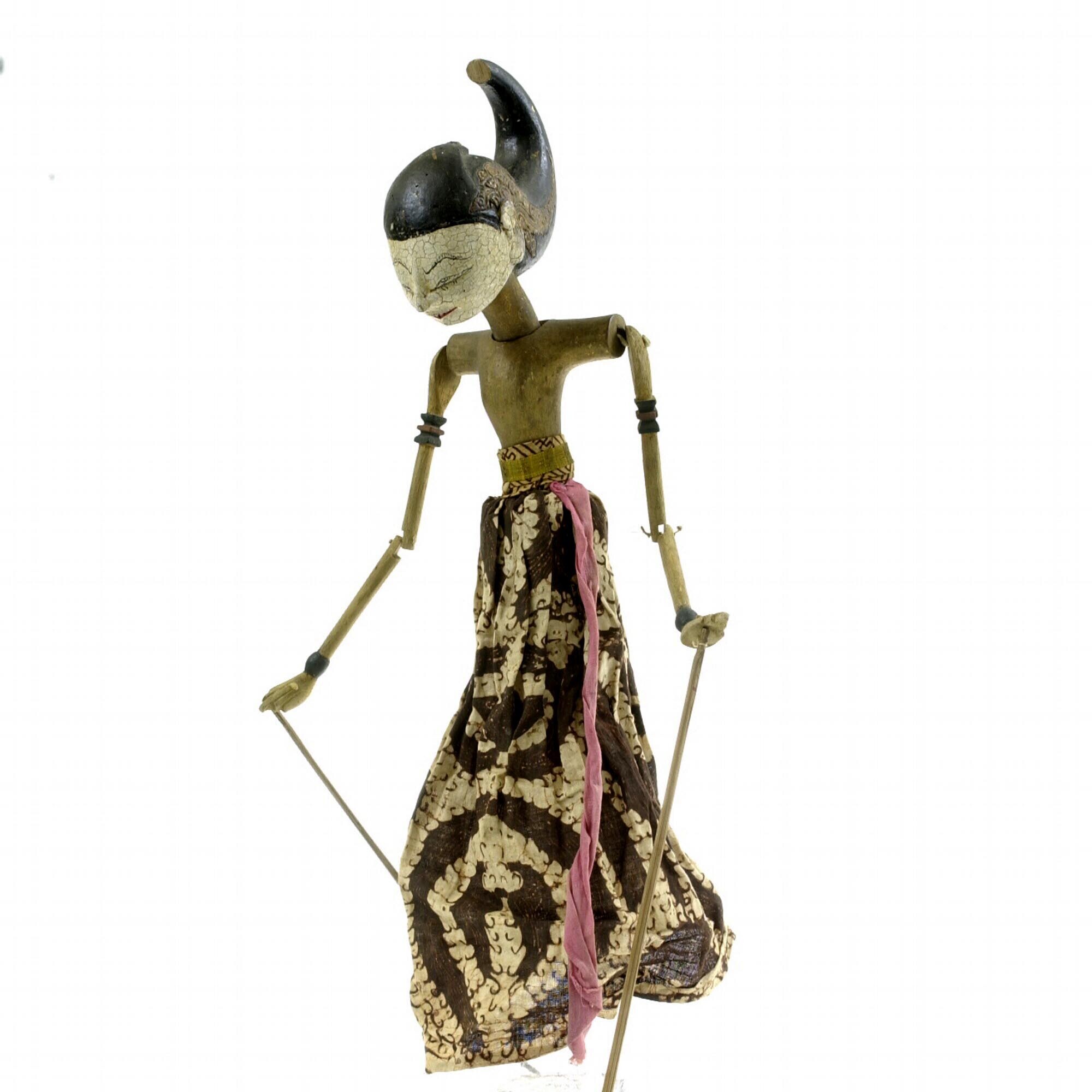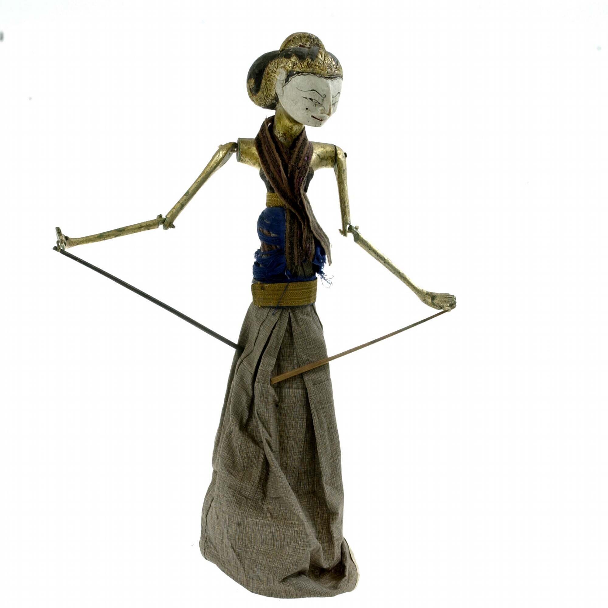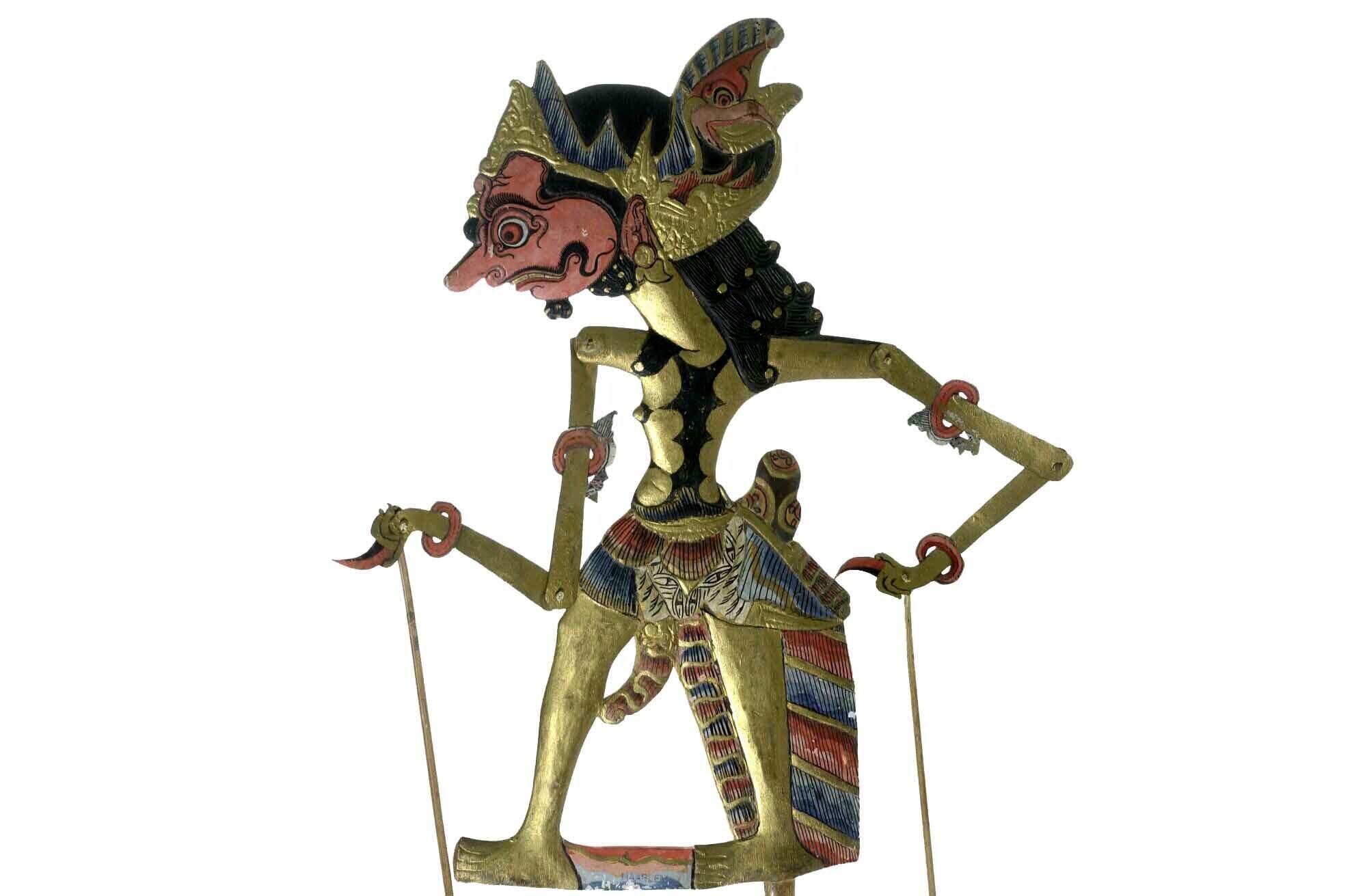 Gesnlen en beschilderd beeld van een wajangfiguur