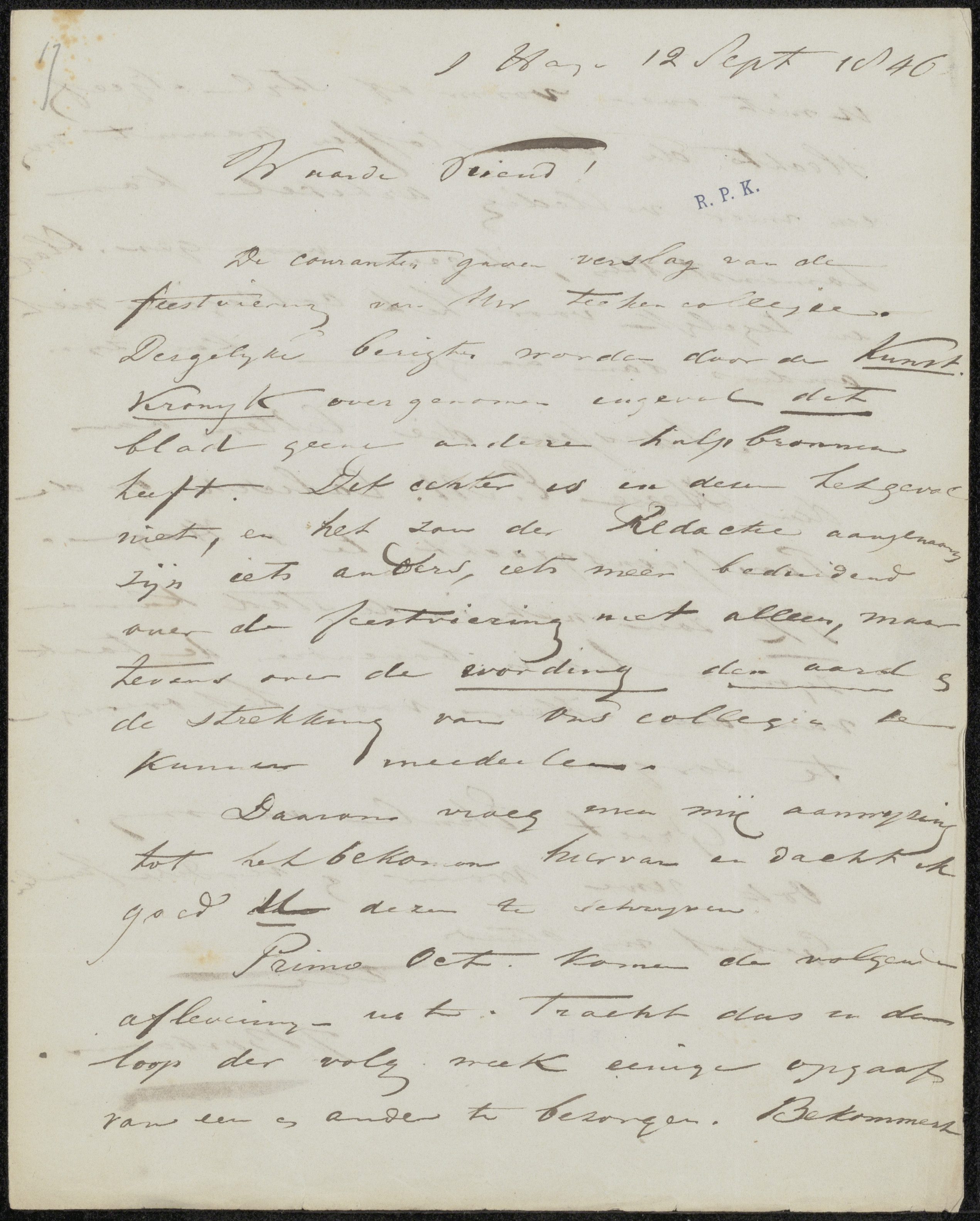 Brief aan onbekend, mogelijk aan C.J. de Lang
