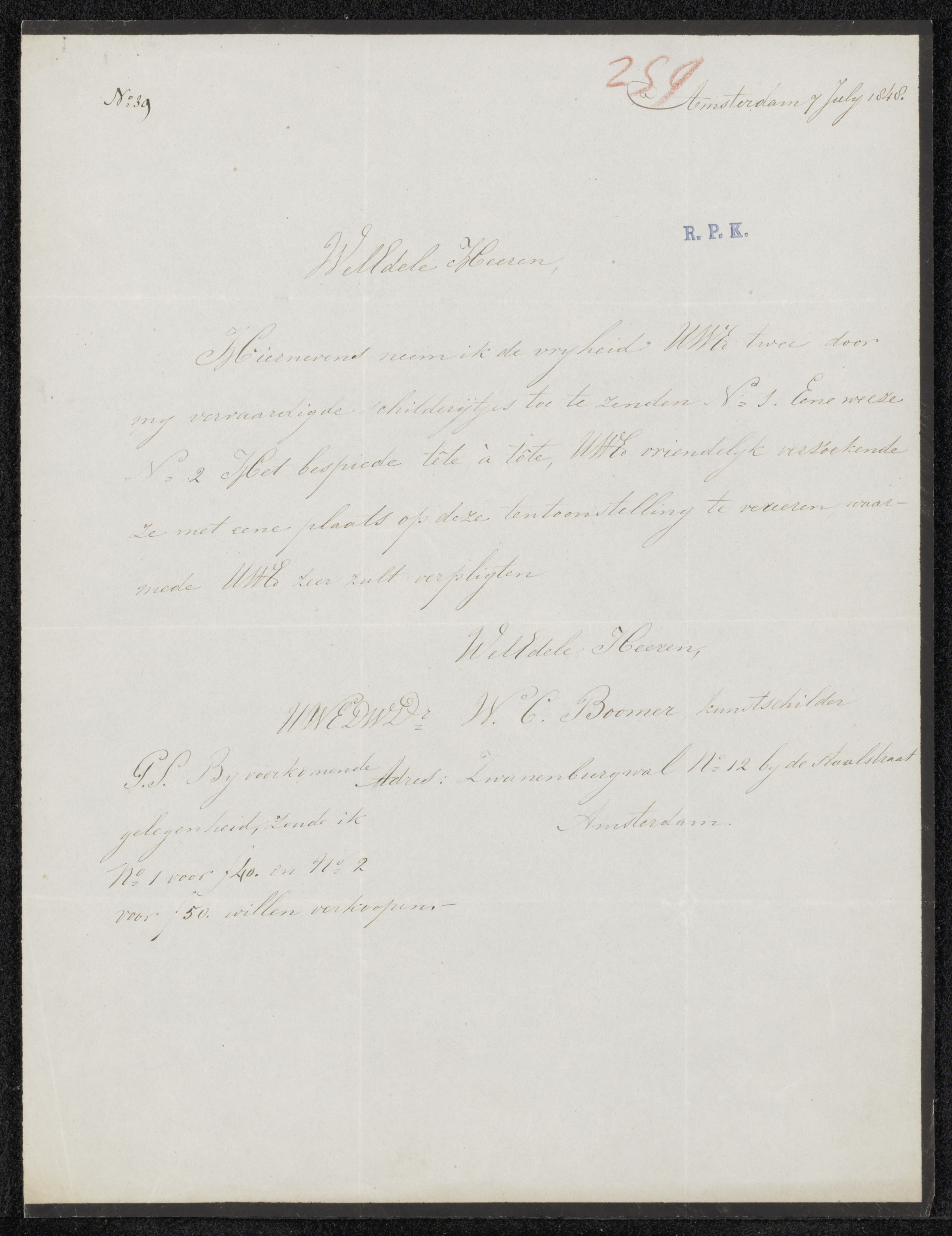 Brief aan de Commissie van de Tentoonstelling van Le...