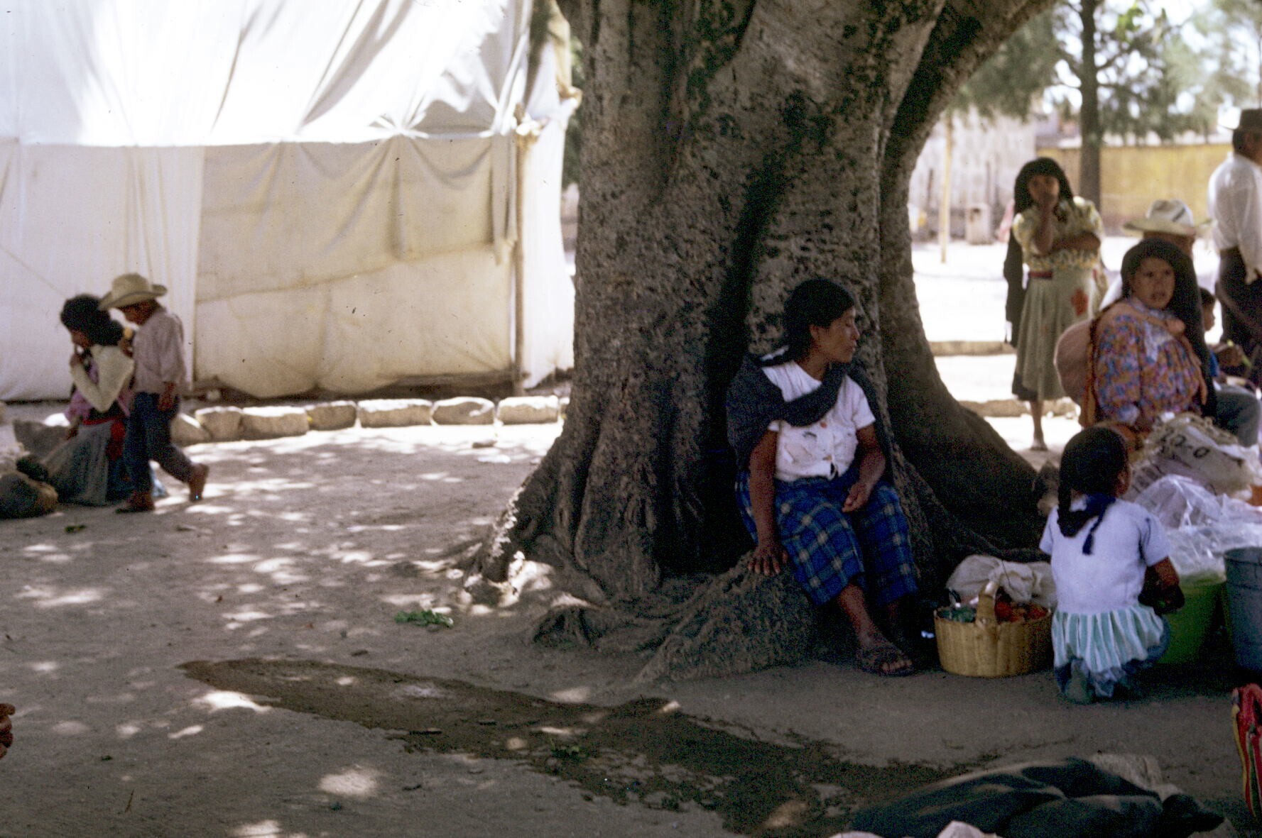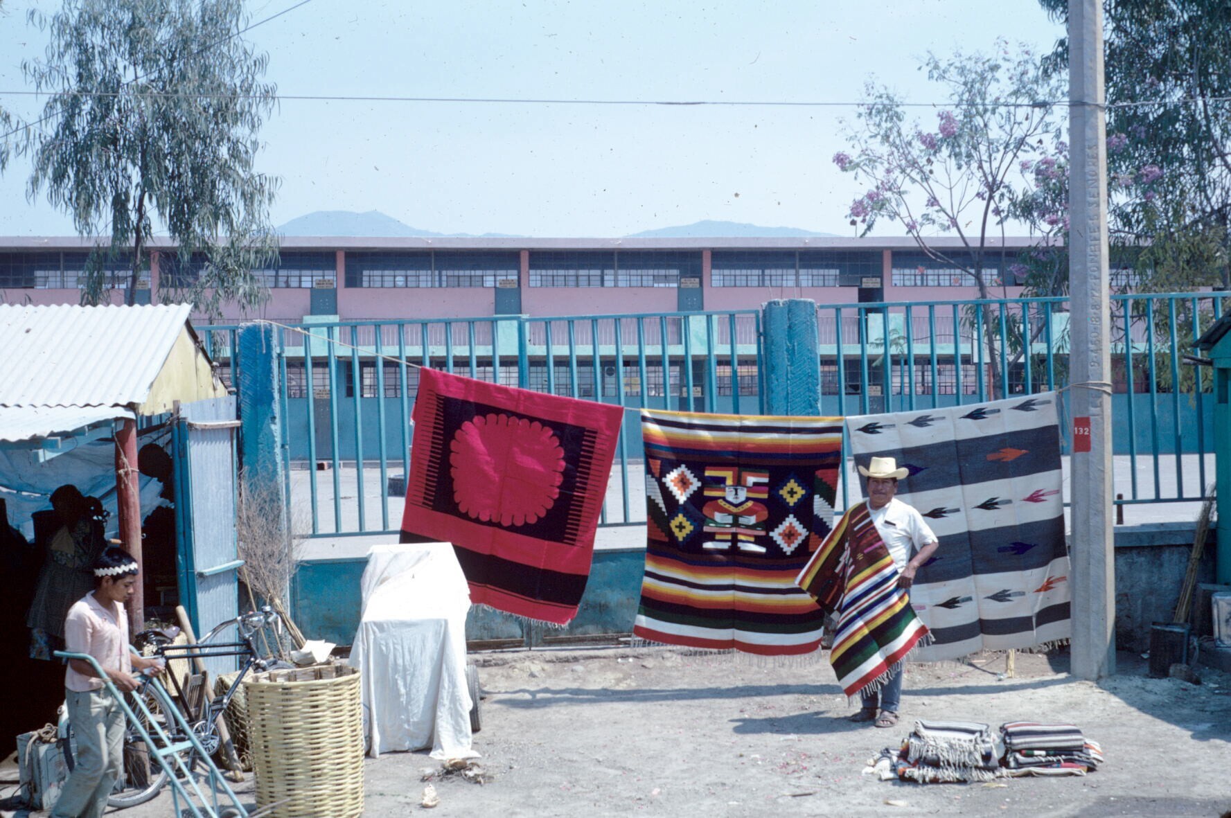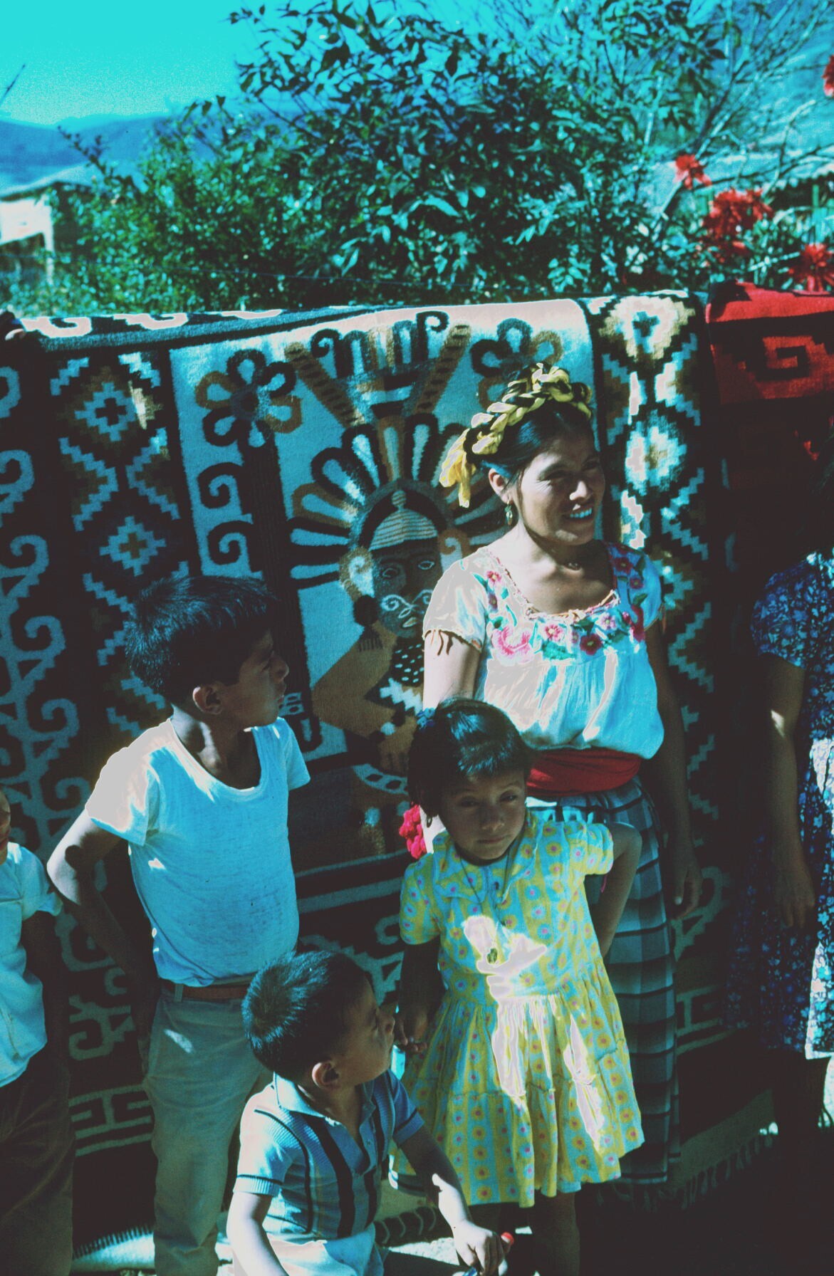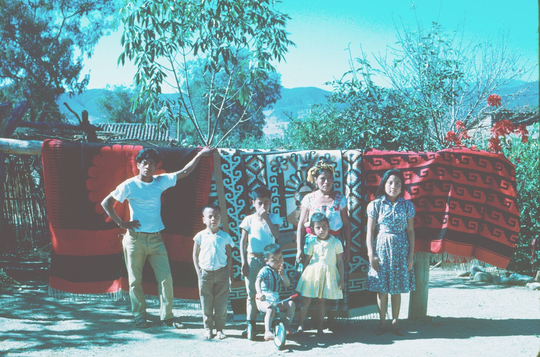 familiegroep voor geweven dekens(sarapes) op erf