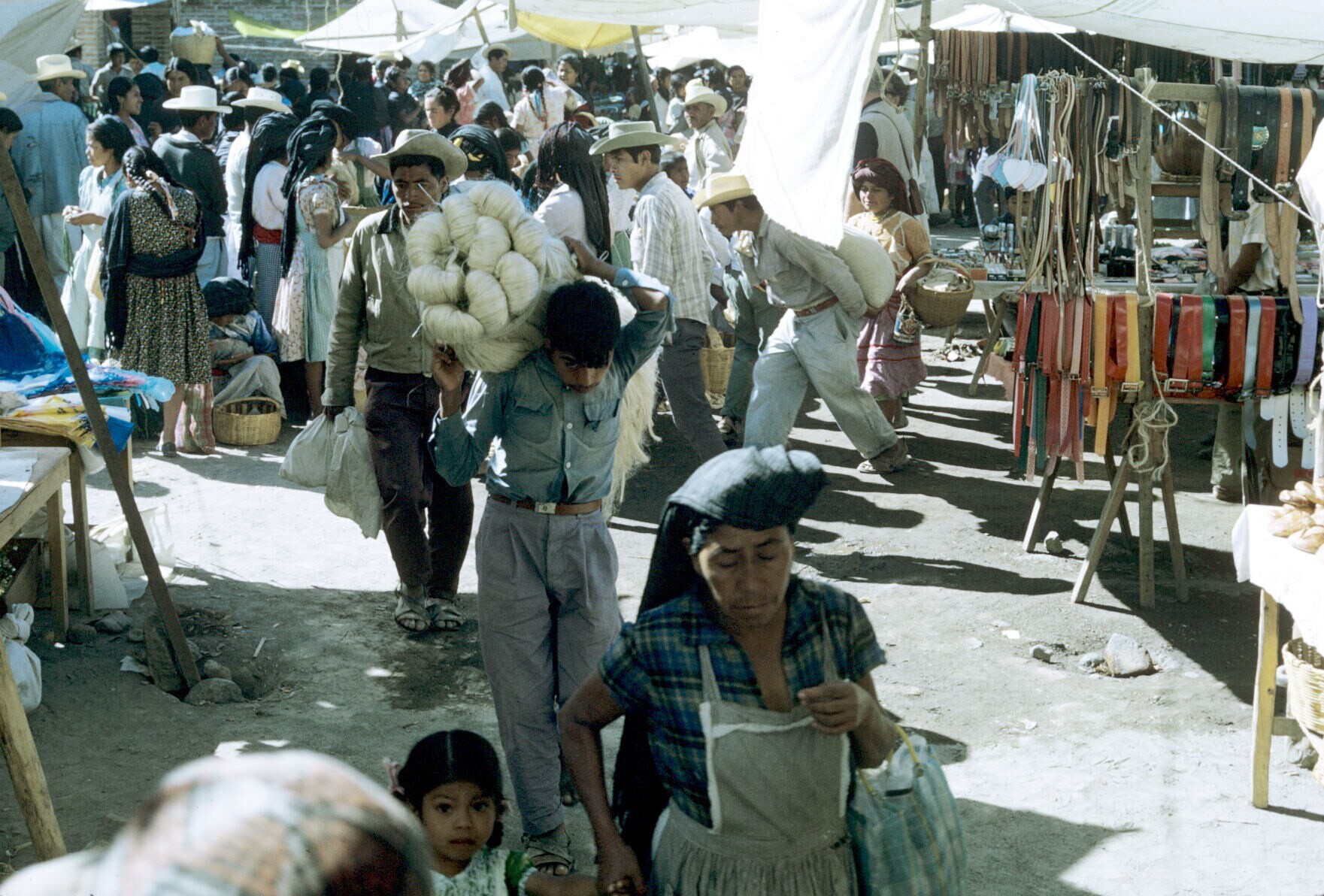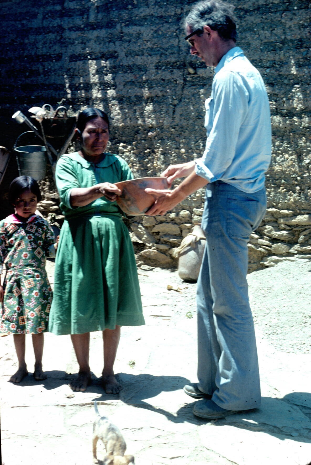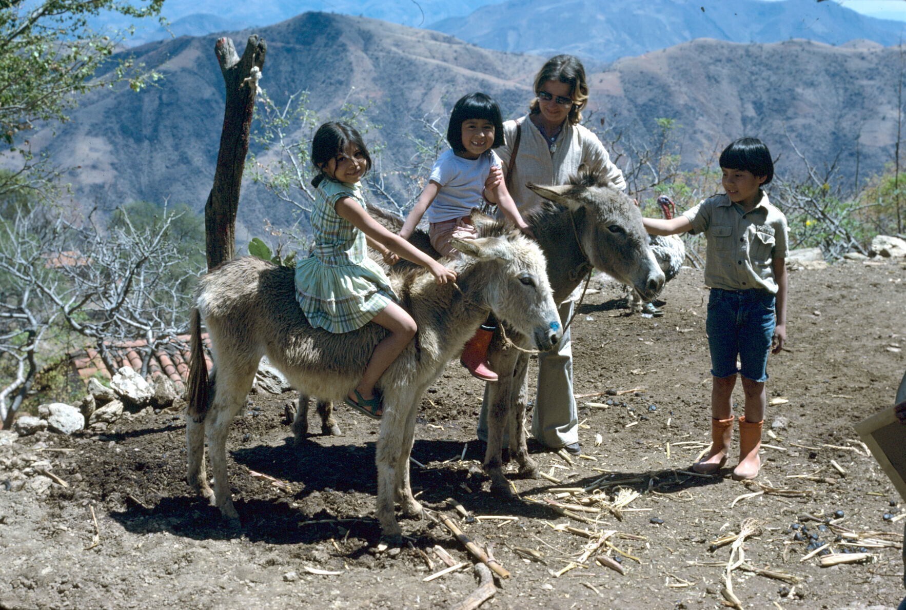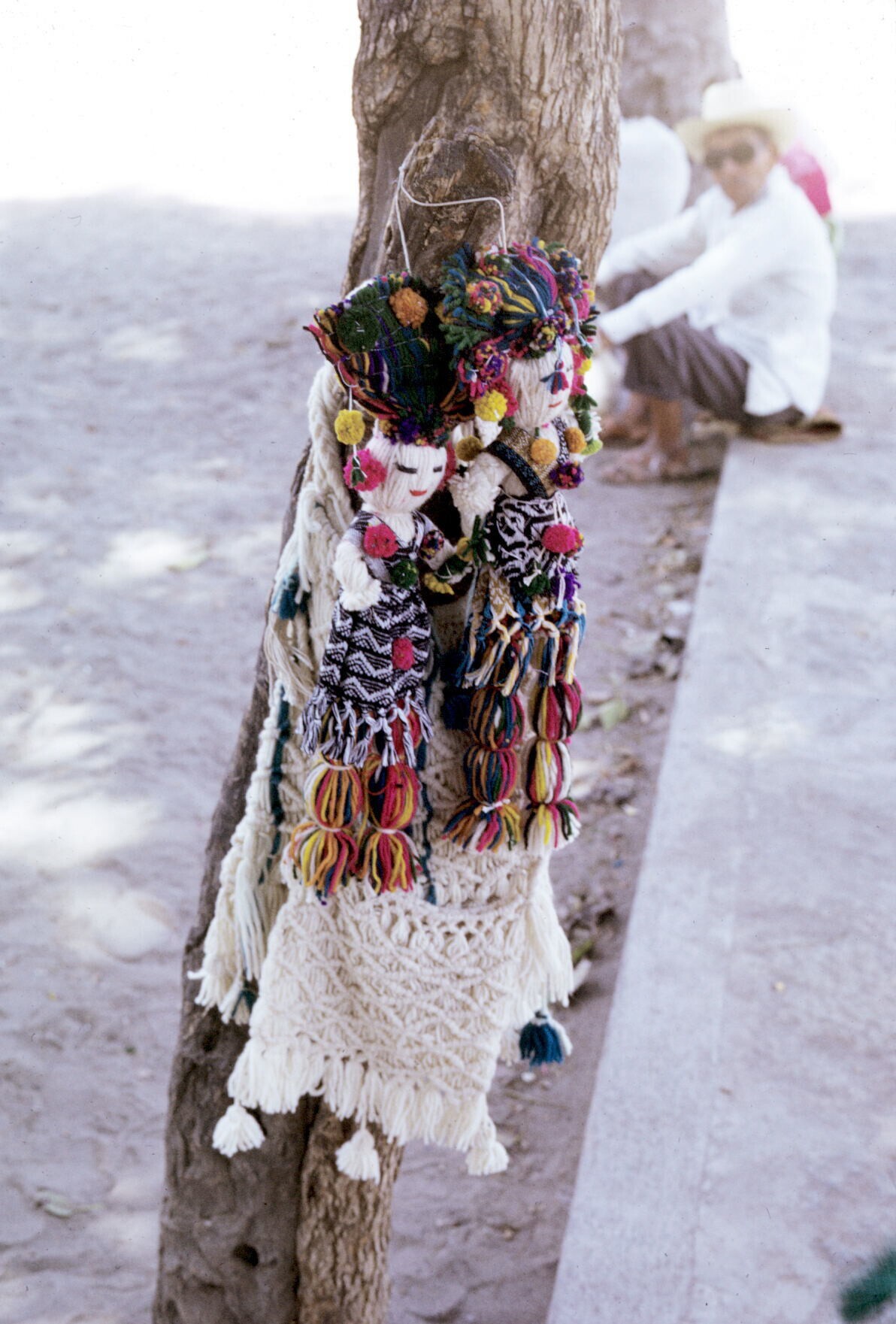 familiegroep voor geweven dekens(sarapes) op erf