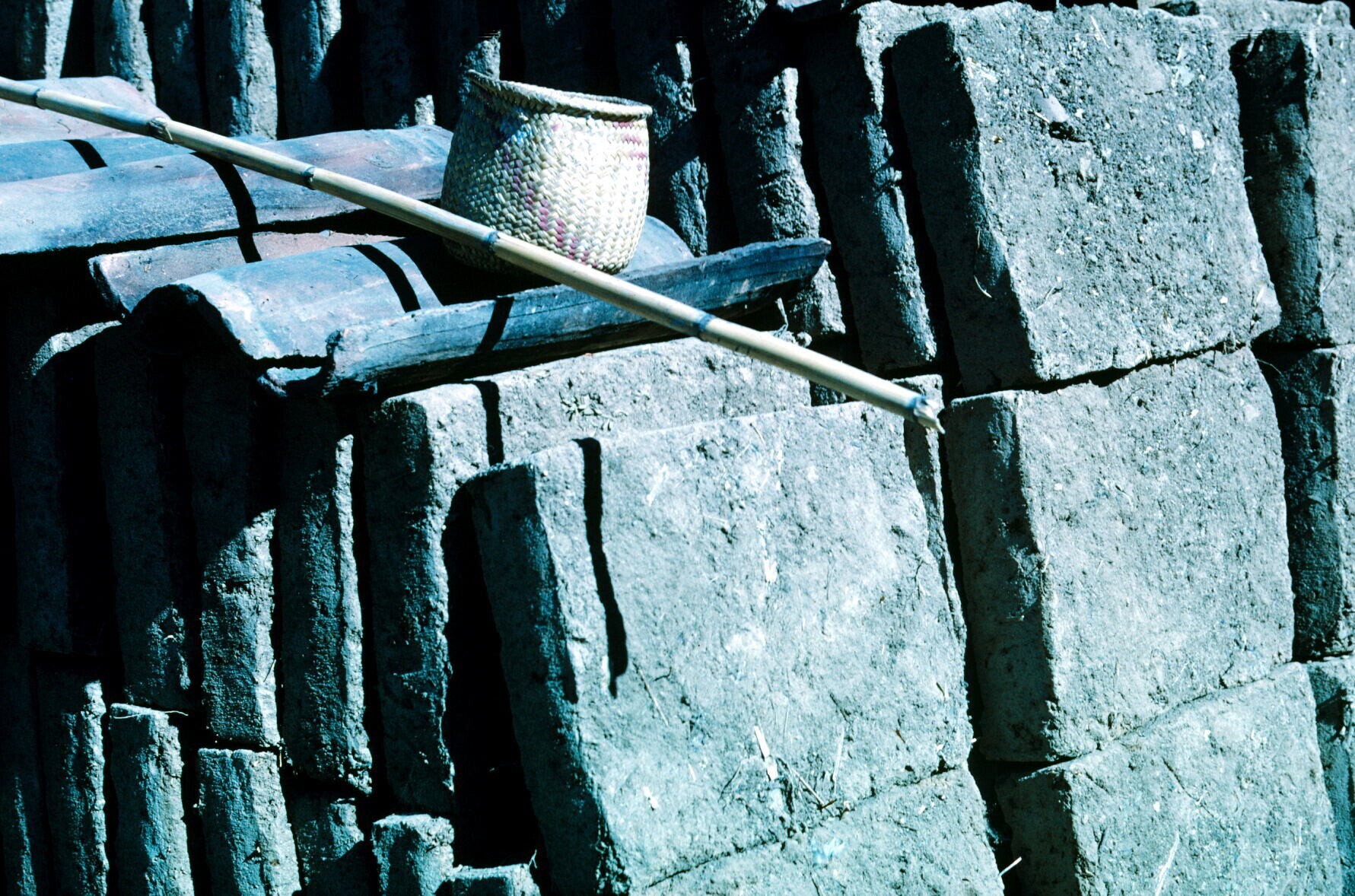 man bij adobe tegels