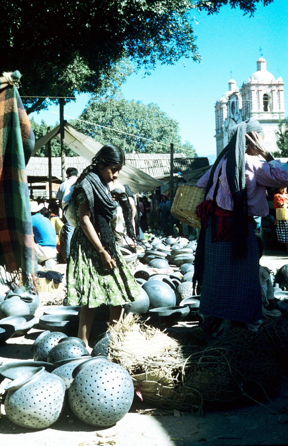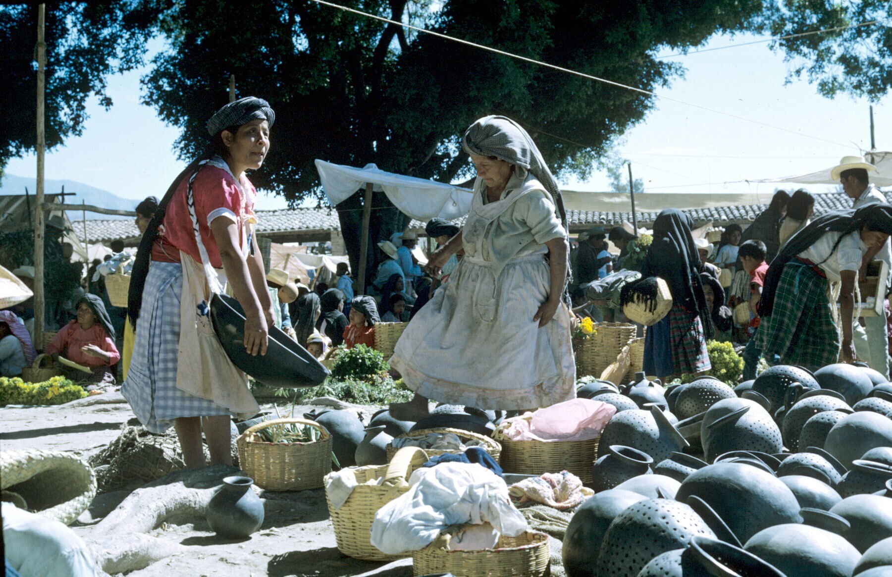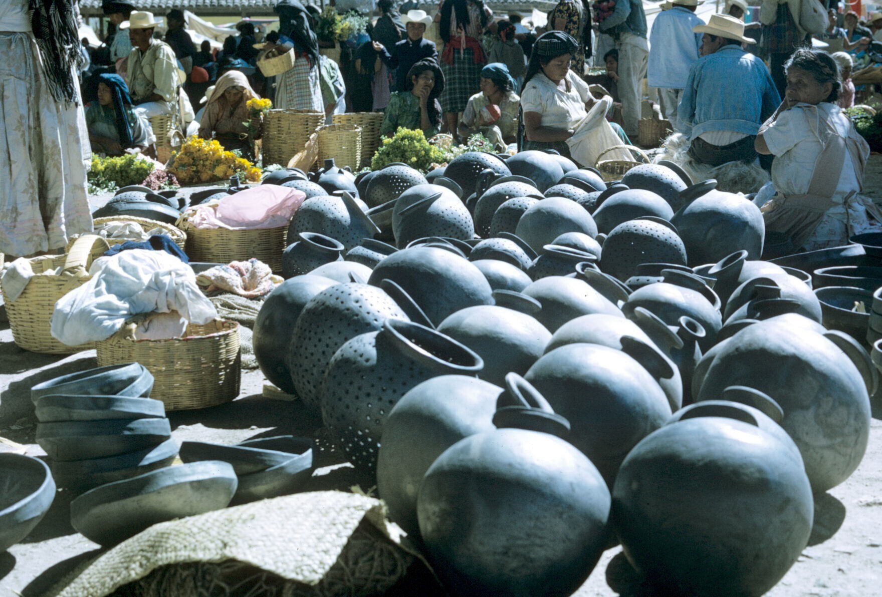 vrouwen bij aardewerk op markt