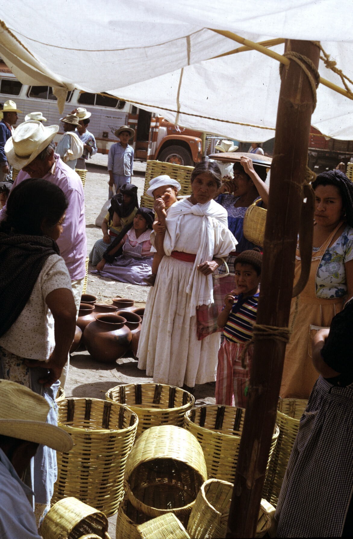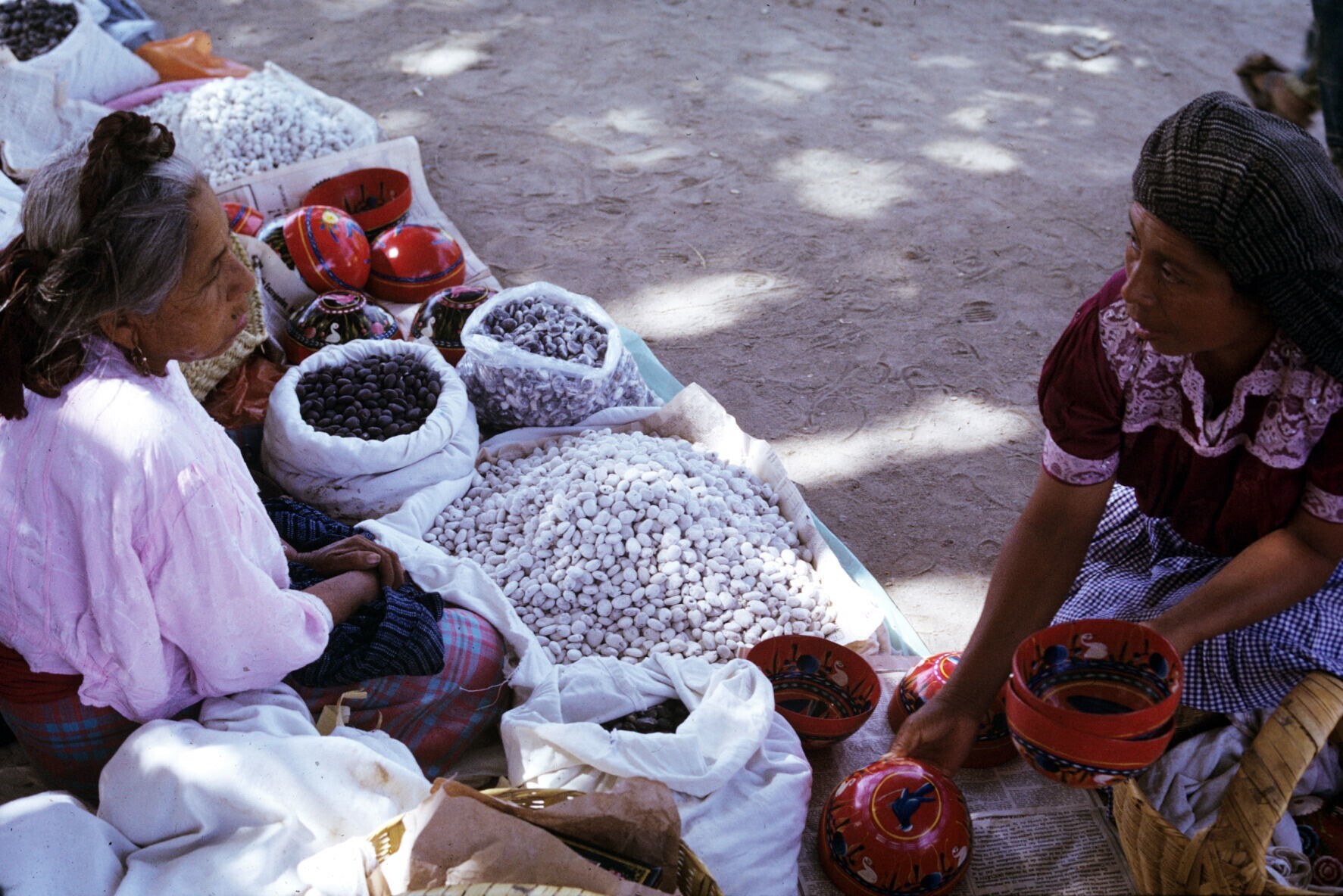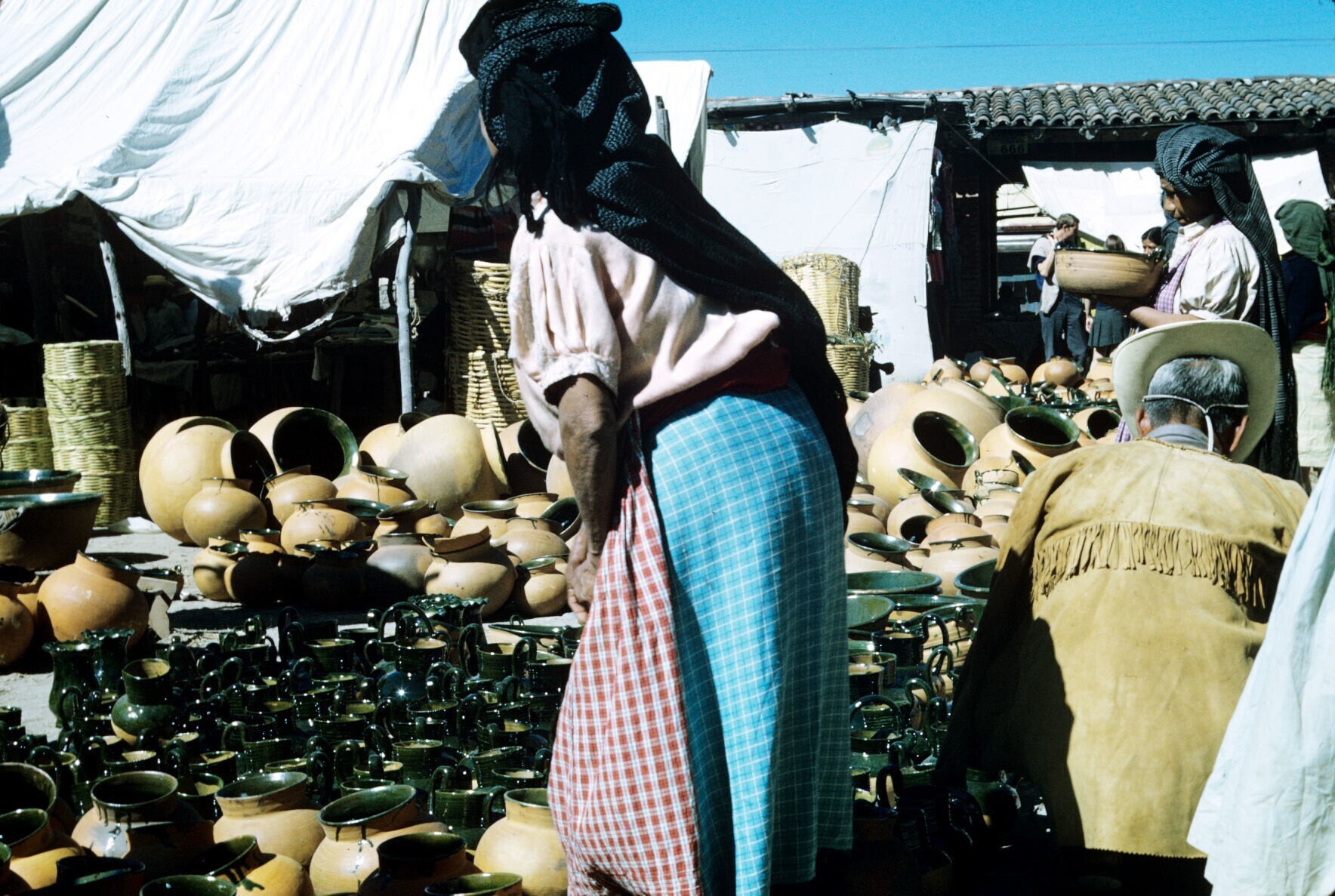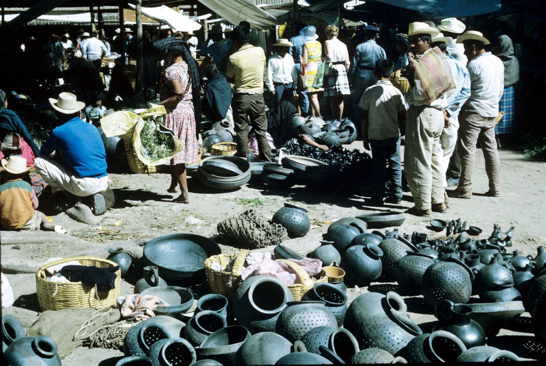 vrouwen bij aardewerk op markt