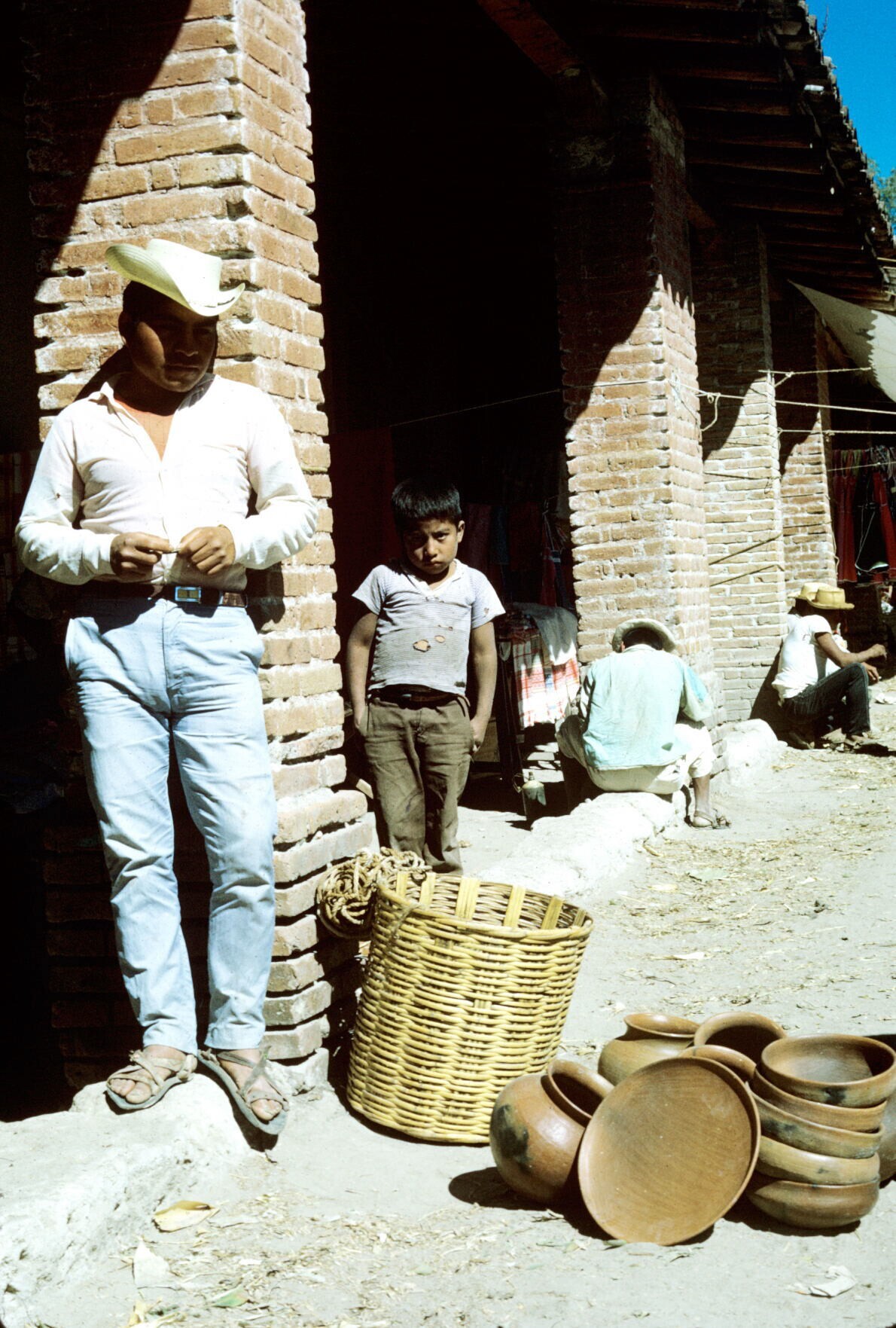 aardewerk en manden op markt