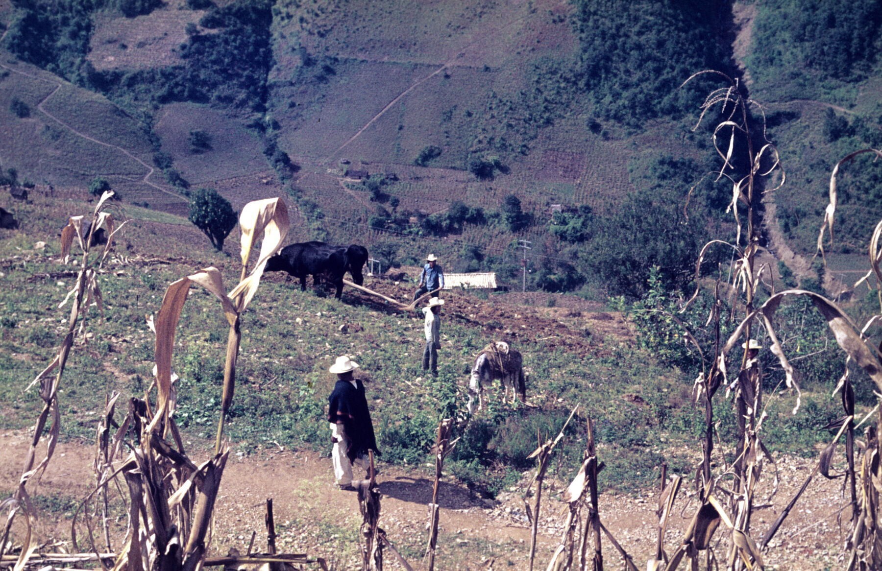 mannen en vee bij het ploegen