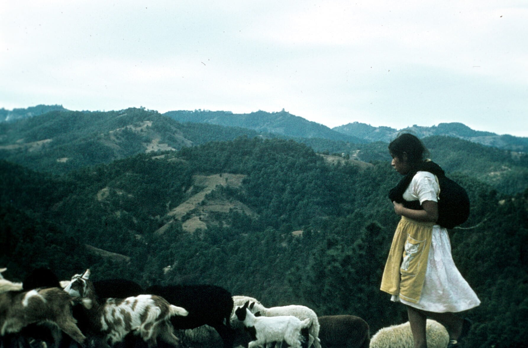 vrouw, geiten hoedend in omgeving