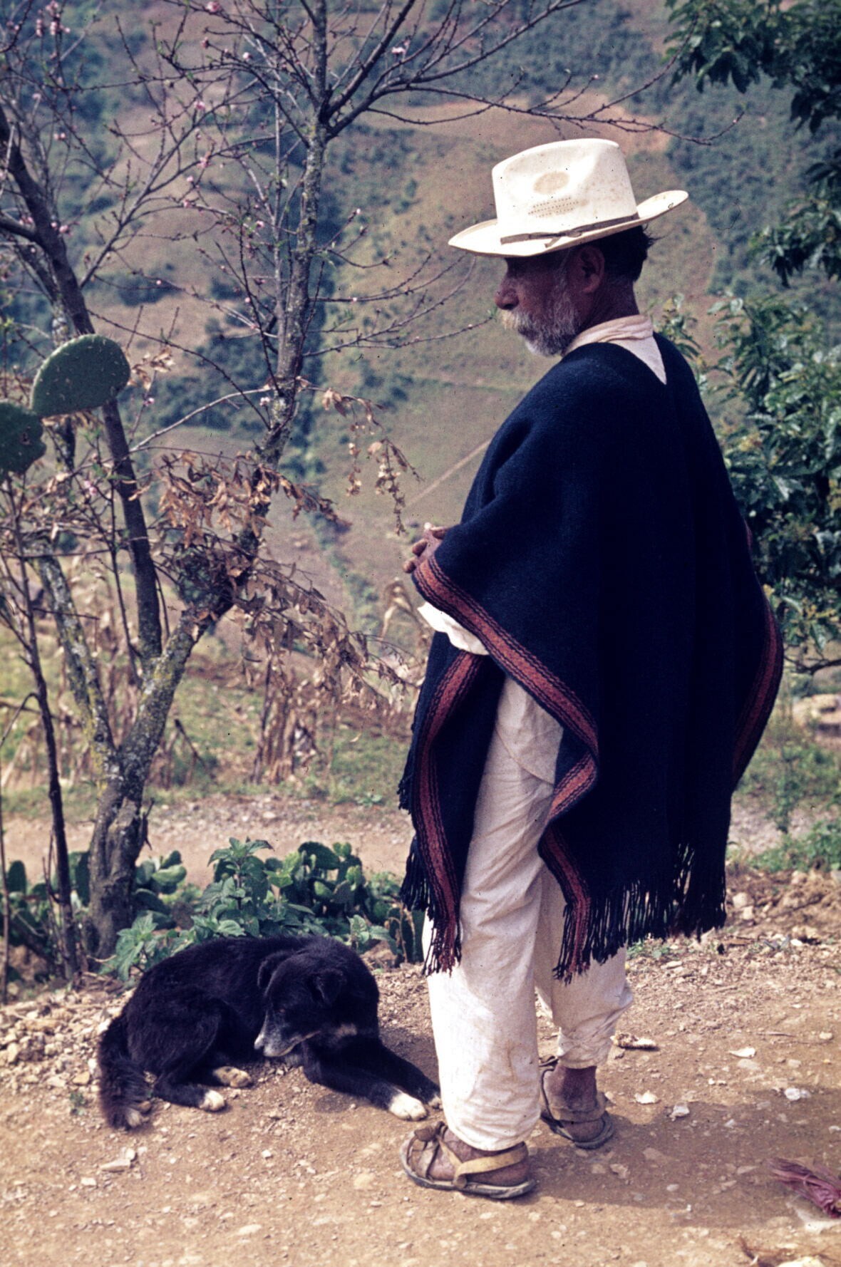 man in cotón (poncho), met hond