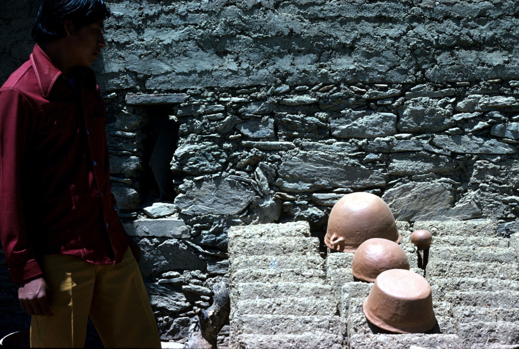 manden en aardewerk op markt