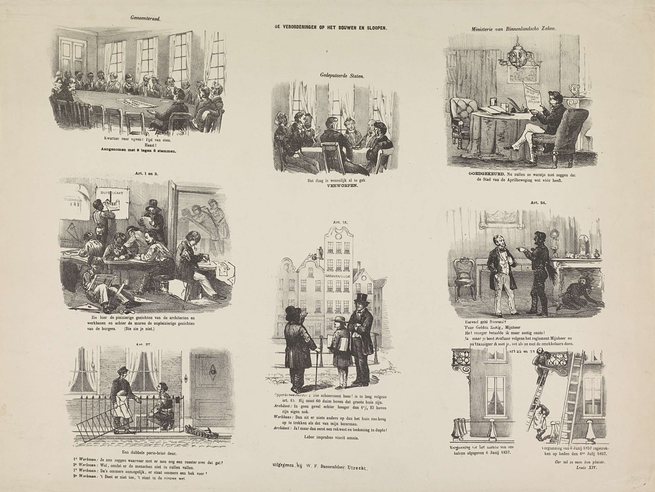 Spotprent op een verordening in Utrecht op het bouwe...