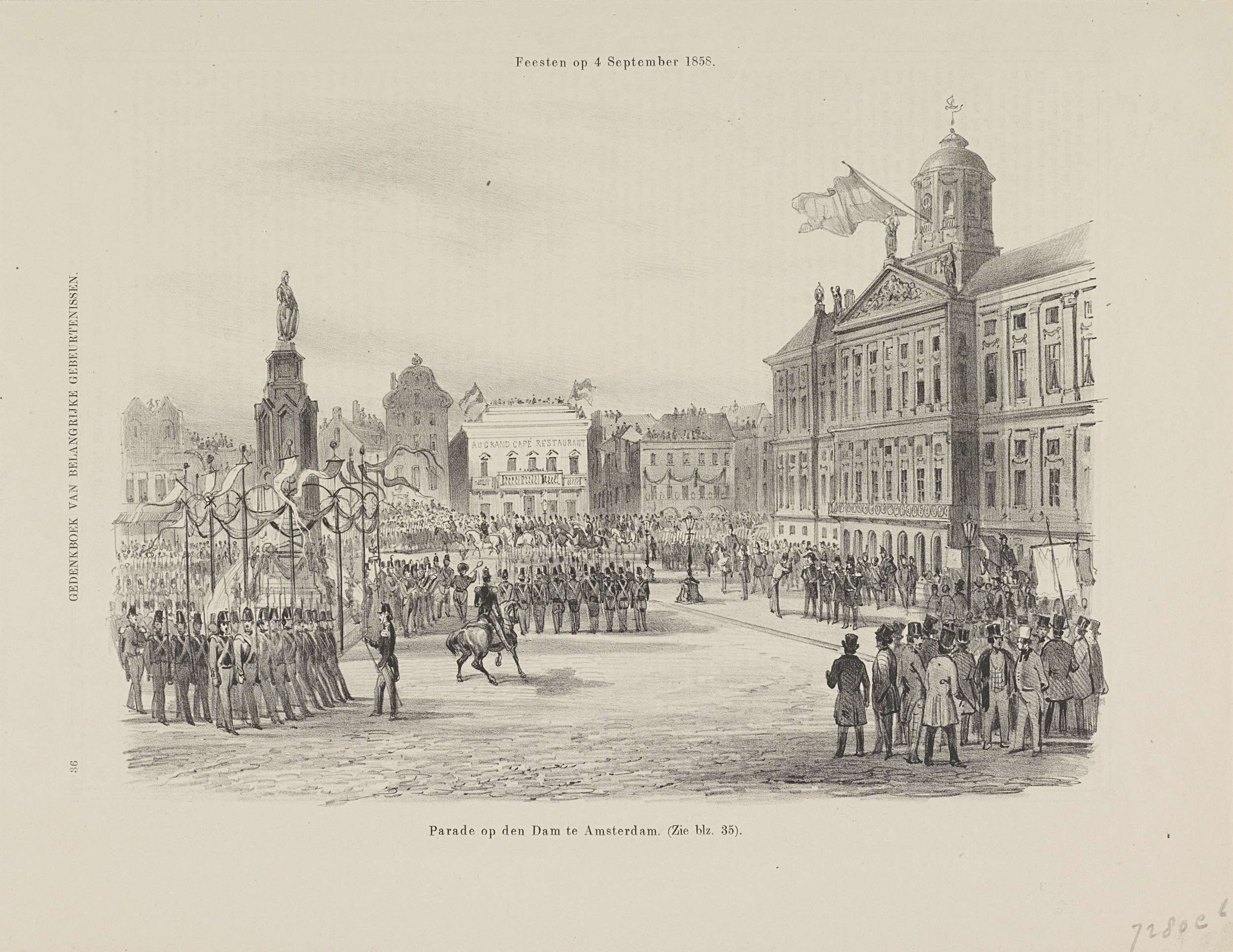 Feesten op 4 September 1858 / Parade op den Dam te A...
