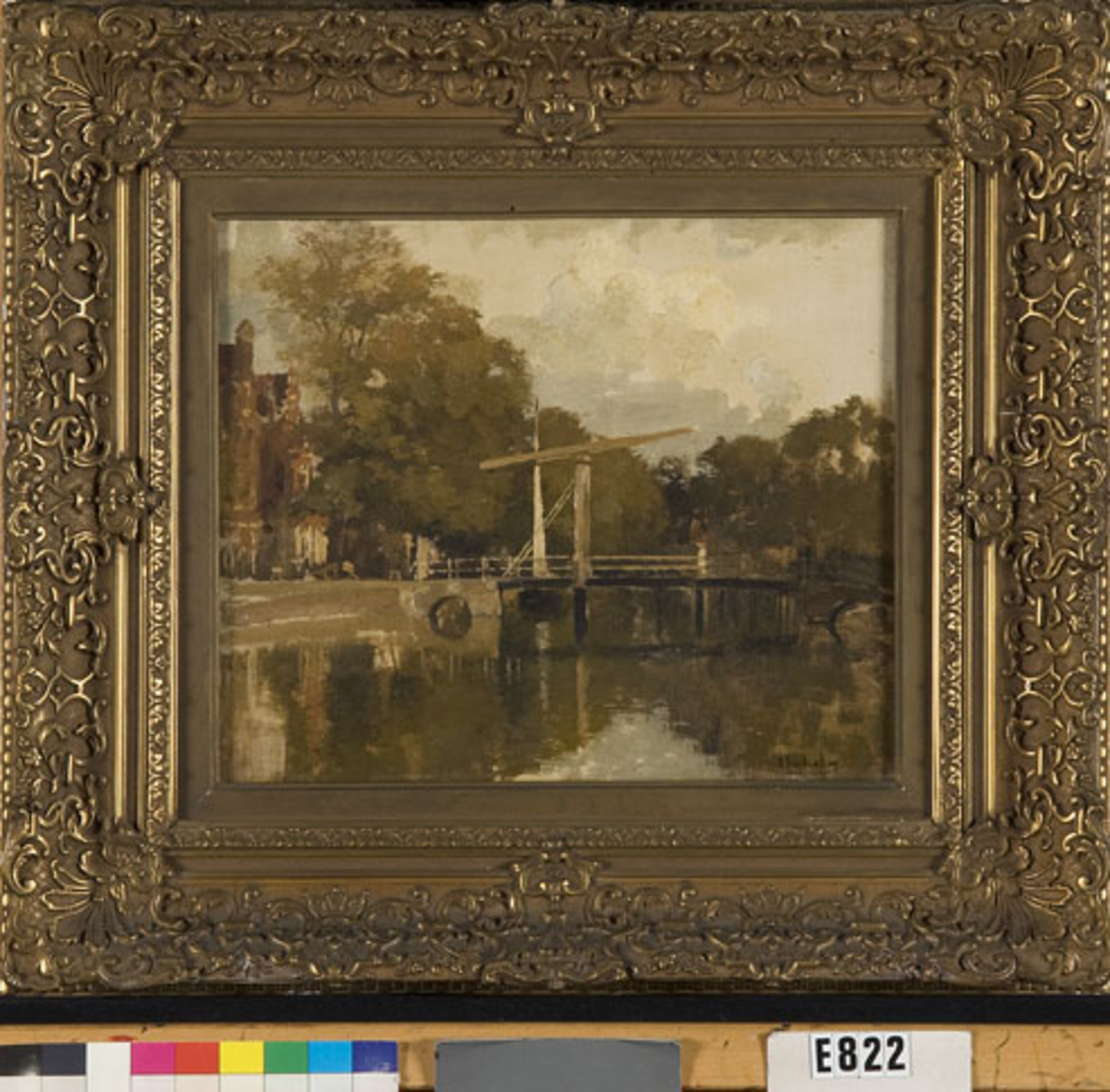 Gezicht op een stad met kanaal en ophaalbrug