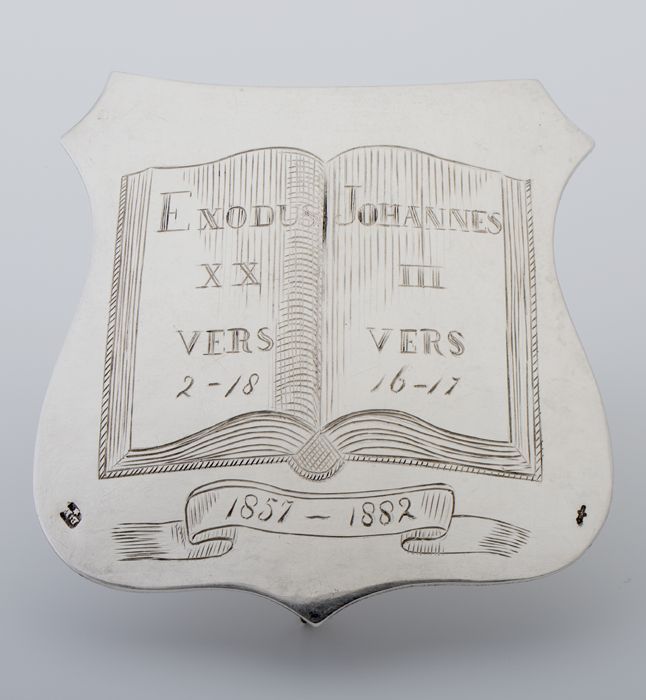Zilveren schild "EXODUS XX VERS 2-18 / JOHANNES III ...