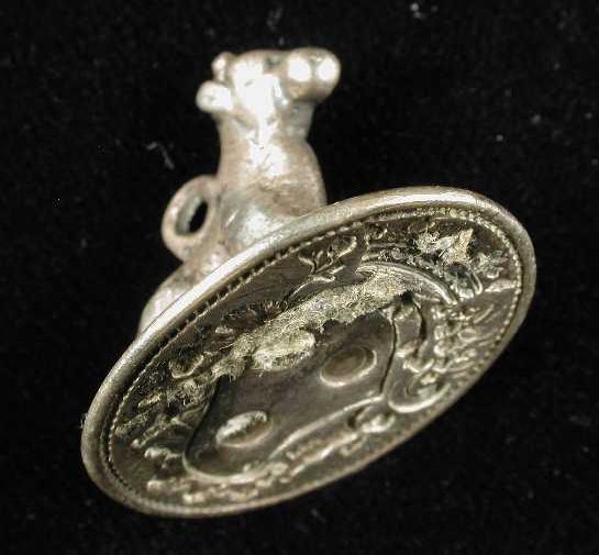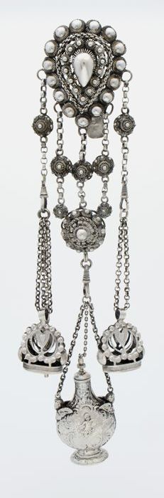 Zilveren chatelaine met twee signetten, horlogesleut...