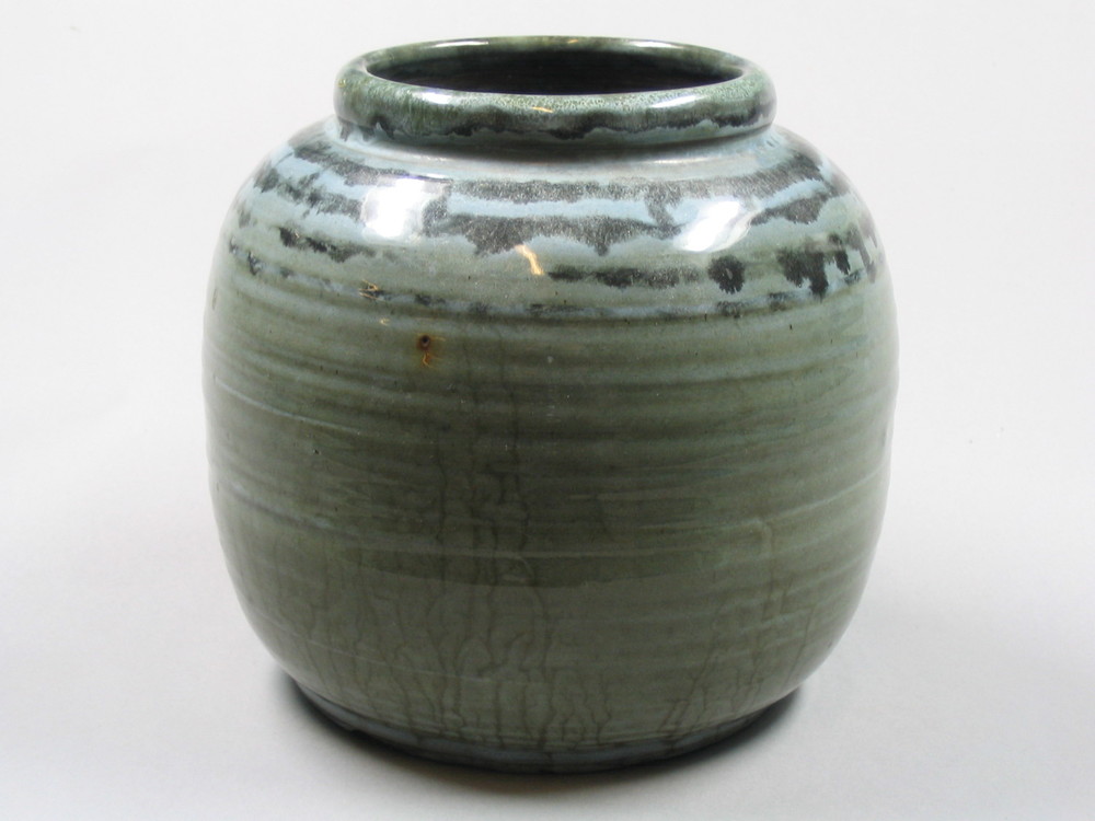 vaas van keramiek, grijsgroen met 4/5 zwarte concent...