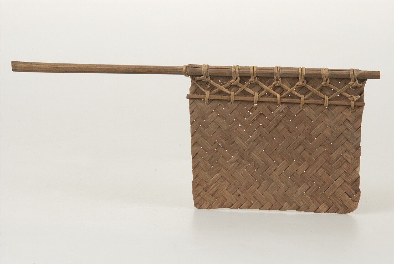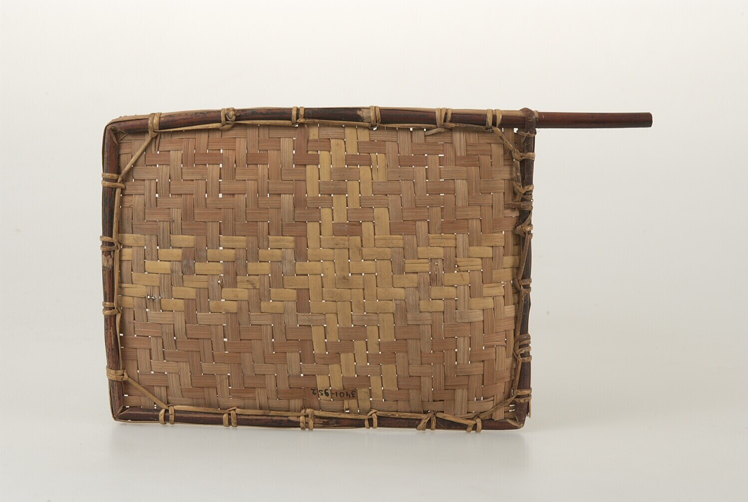 Gevlochten mand van bamboe en vermoedelijk rotan en ...