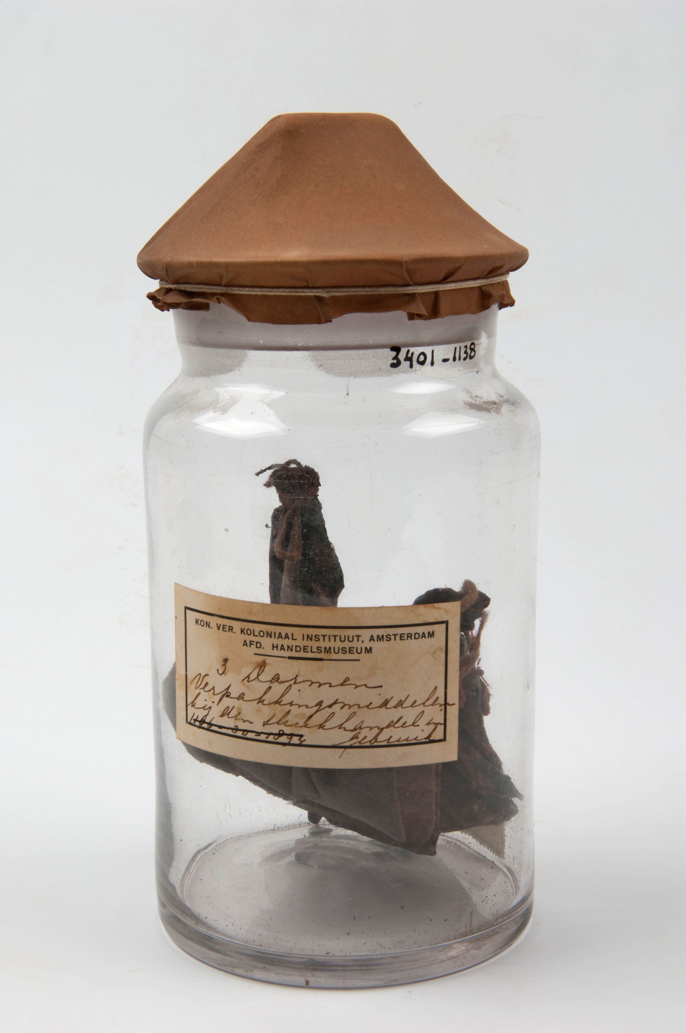 Darmen, dienende als opiumverpakkingen in stopfles