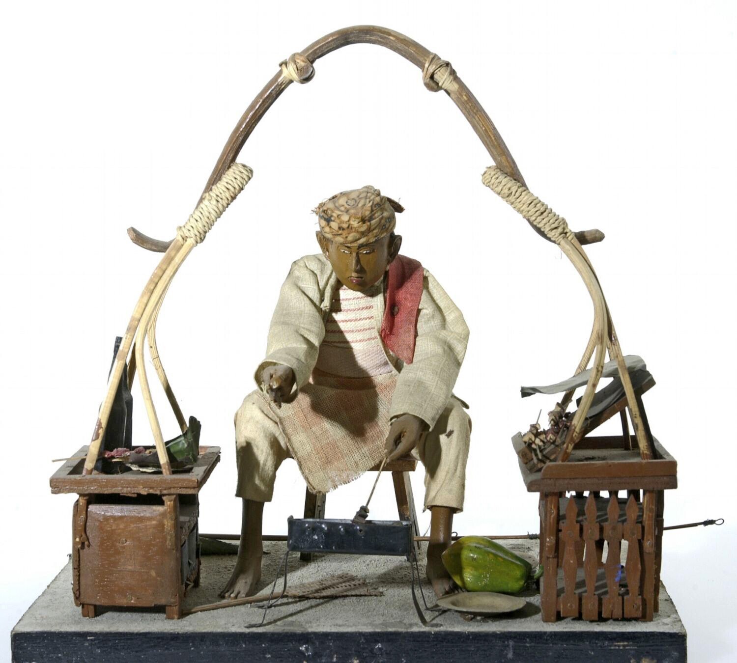 Gevlochten en beschilderde vissershoed van bamboe, v...