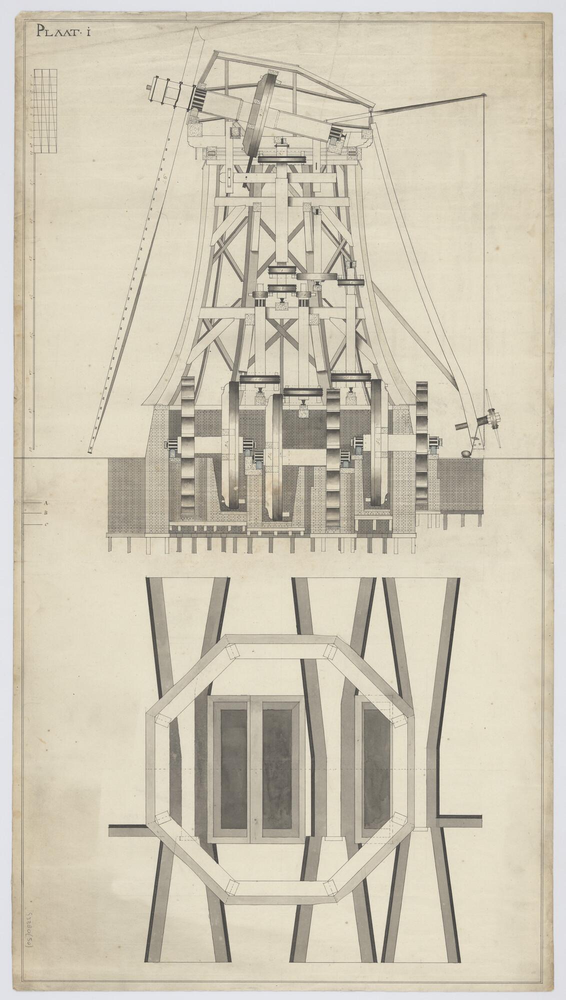 Constructietekening van een wind- en watermolen