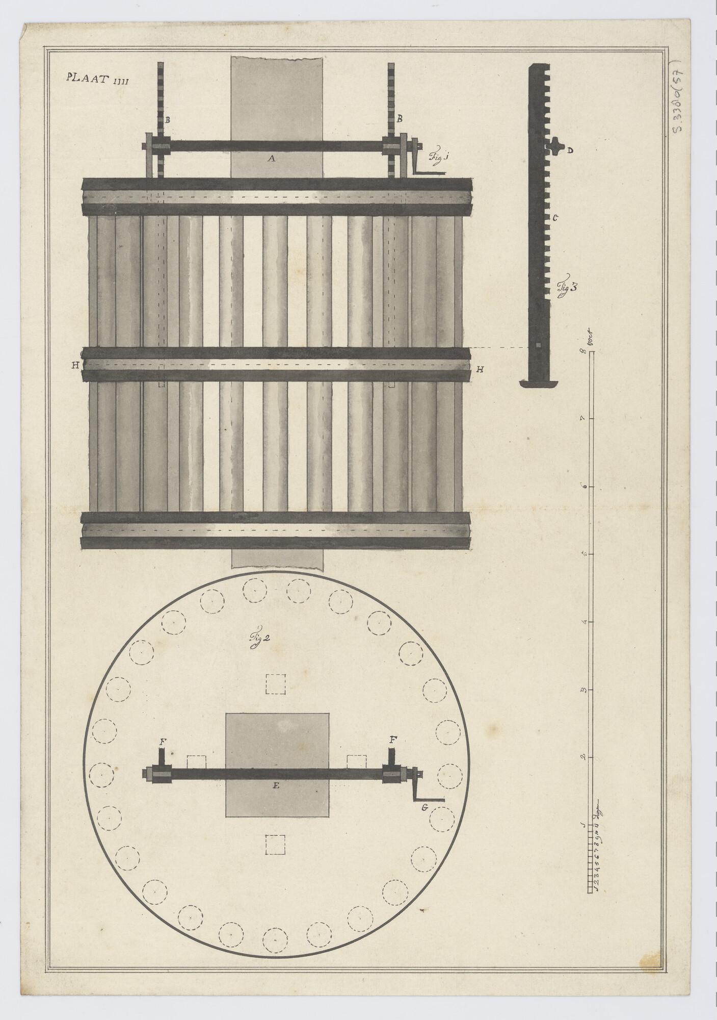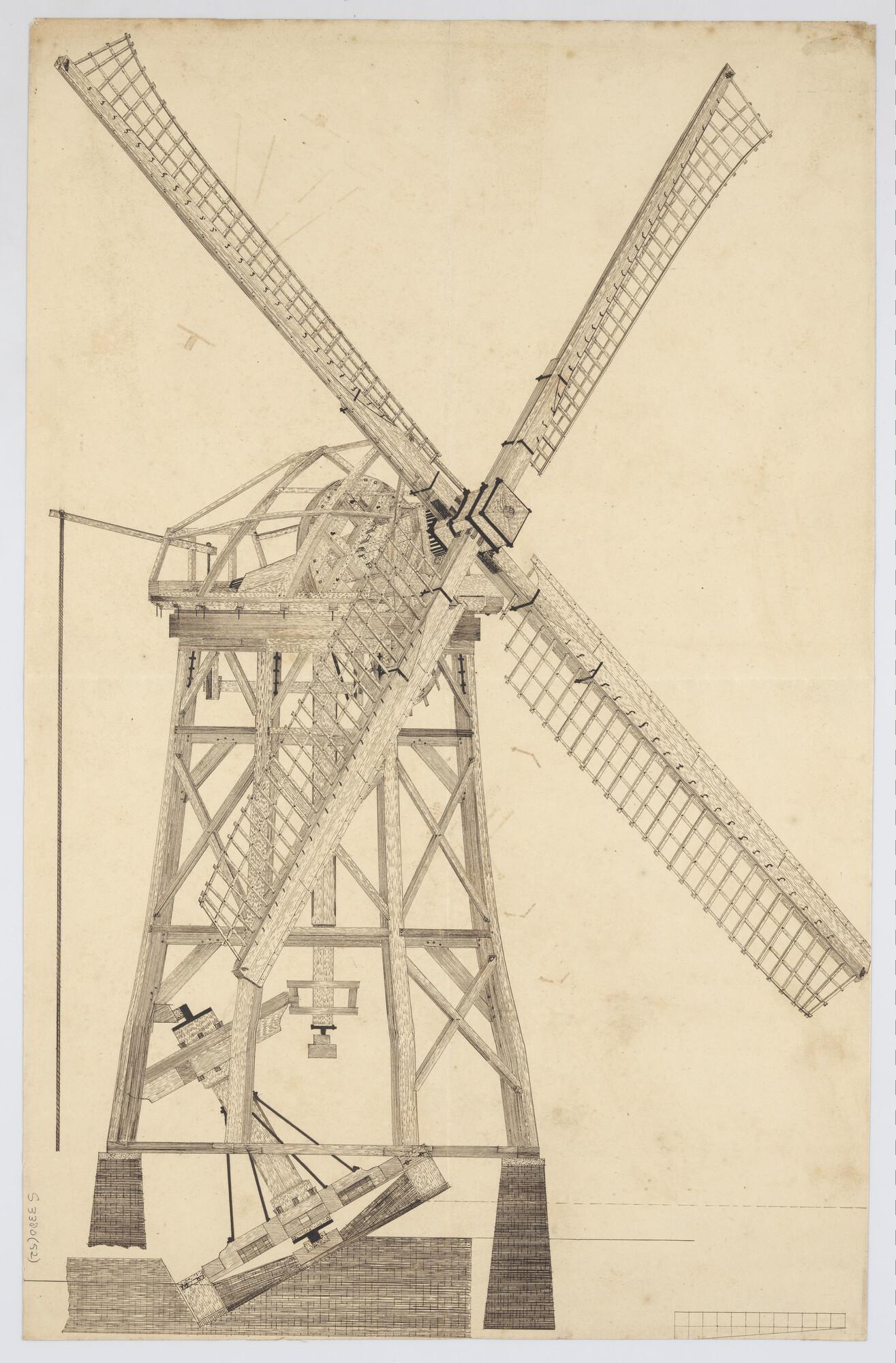 Detail. Constructietekening van een molen voor een p...